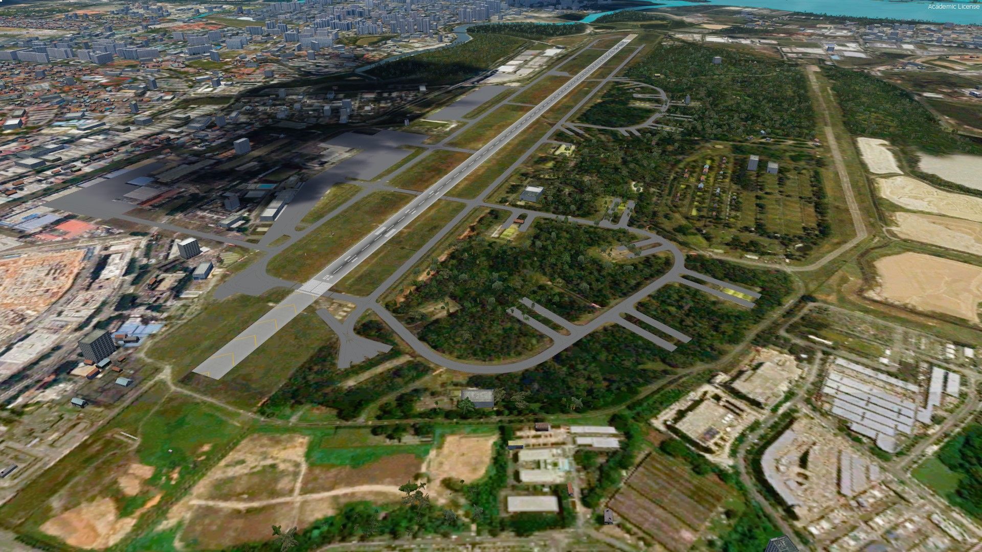 Der östliche Stadtbereich gestaltet sich ähnlich wie Sentosa und die angrenzenden Hafenbereiche im Süden: Je weiter östlich, desto mehr Gebäude und Objekte. Grundsätzlich muss aber noch einmal betont werden, dass durchaus eine Menge an Gebäuden platziert sind. Eine vollkommene Leere gibt es nur in den angesprochenen Häfen. Der zur Zeit rein militärisch und privat genutzte Flughafen Seletar ist passend in die Szenerie eingearbeitet worden, hat aber keine bemerkenswerten Details erhalten. Allerdings wurden die Bodentexturen an die Stadtszenerie angepasst. So fügt sich das Areal sehr passend in die Stadt ein. Auf den Screenshots gibt es auch hier ein paar verirrte Bäume aufgrund der Nachladezeit.