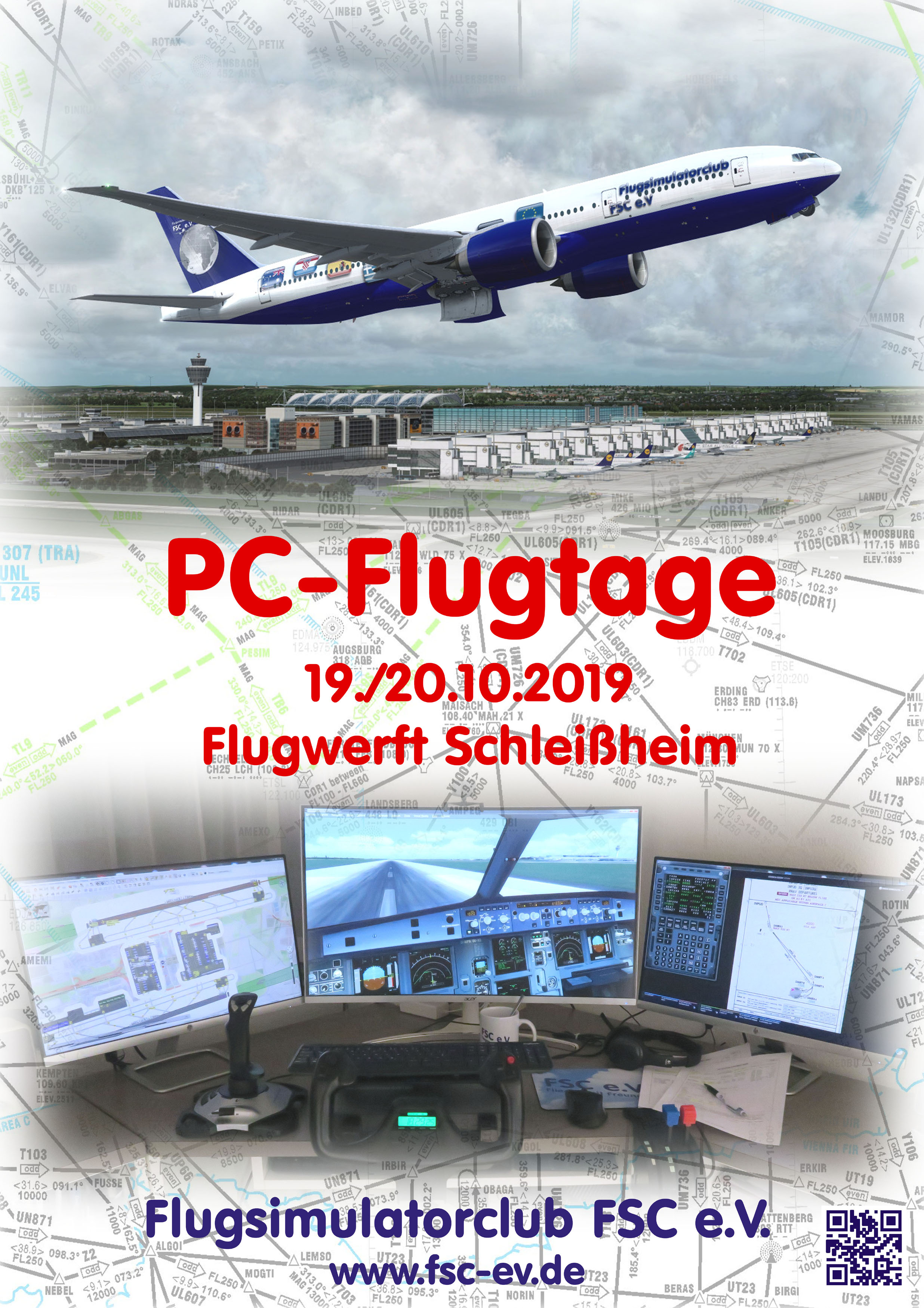 Der Flugsimulatorclub FSC e.V. lädt am 19. und 20. Oktober 2019 wieder alle Flugsimulationsinteressierte in die Flugwerft Schleißheim des Deutschen Museums München ein. Die Veranstaltung soll einen Einblick in das schöne und spannende Hobby der PC-Flugsimulation vermitteln, und sie dient auch dem gegenseitigen Austausch unter bereits aktiven virtuellen Piloten und Controllern.