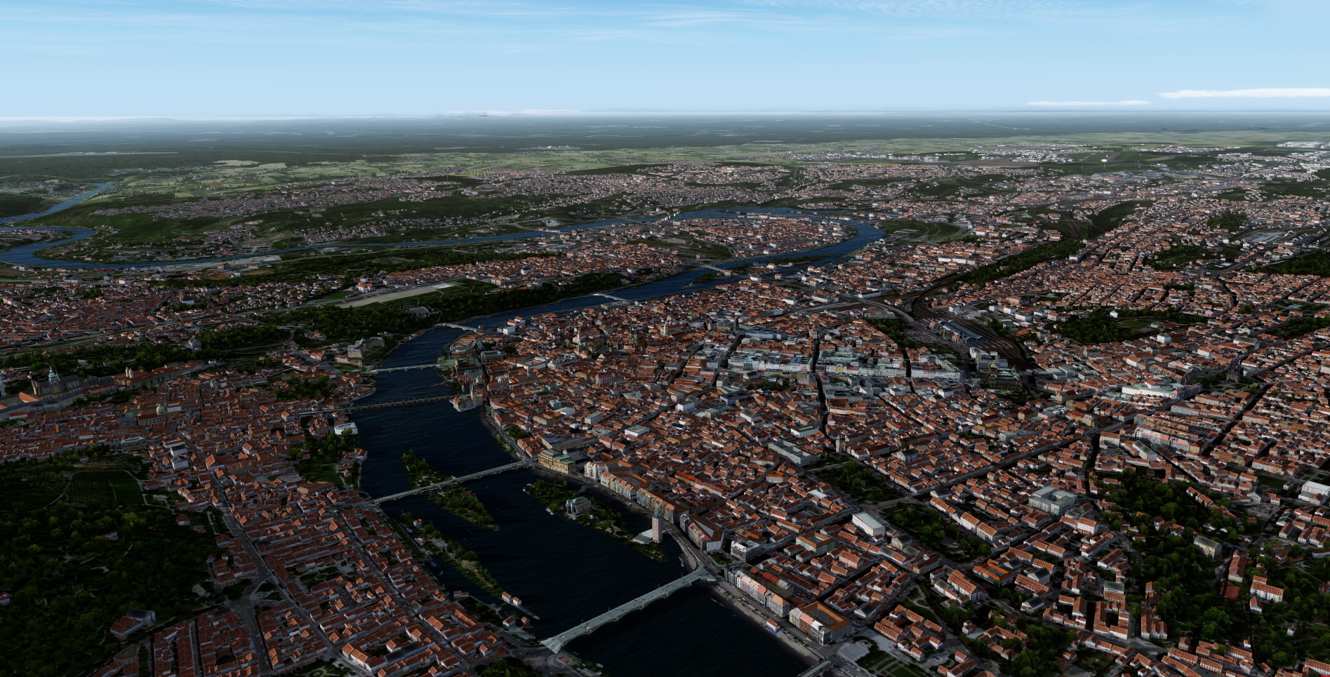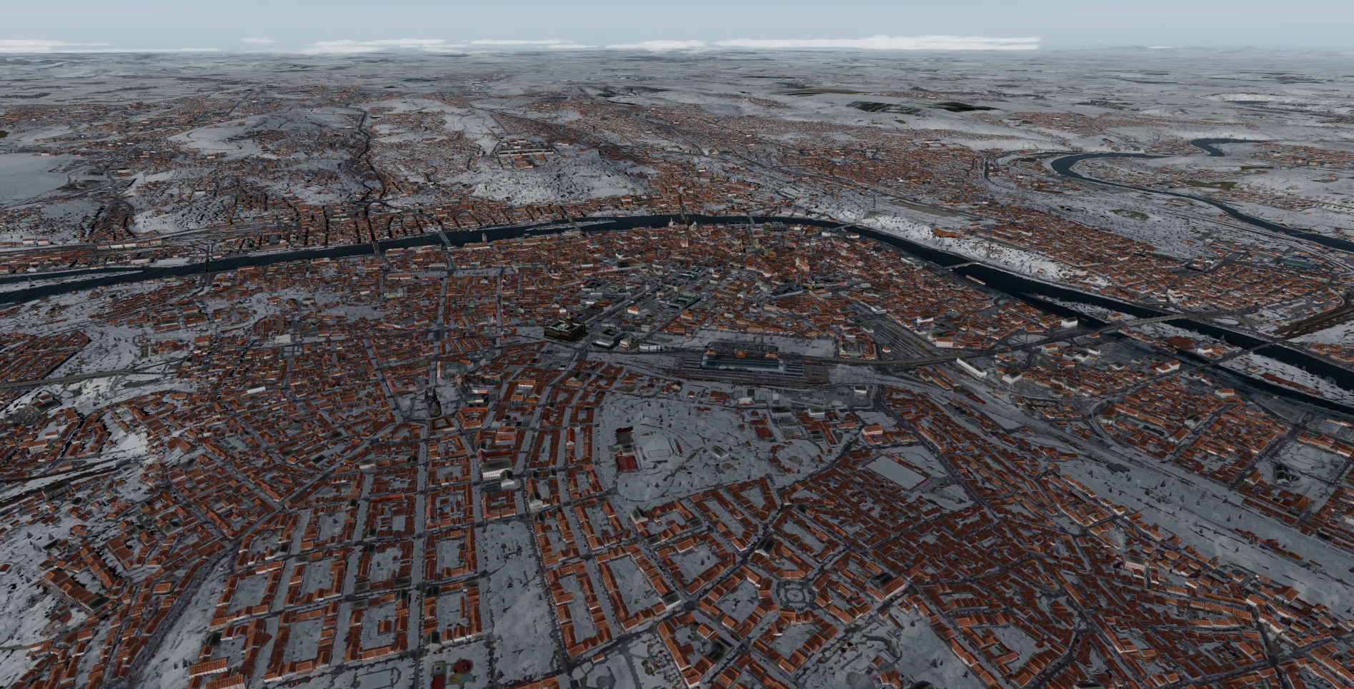 Leider ist das hier in dem Gewusel über die neue Simulatoren etwas untergegangen. Das ist eine sehr schöne Szenerie mit vielen POIs, die wirklich sehr dicht mit zur Stadt passenden Häusern bebaut ist. Außerdem fügt sie sich harmonisch in die ORBX OpenLC EU/Global Base-Umgebung ein. (Was man leider auch nicht von alle SamScene-Szenerien sagen kann, Tokio z.B. passt mit dem graubraunen Bodenbild überhaupt nicht zur ORBX-Global-Umgebung und beim Autogen gibt es auch einen Bruch.)
