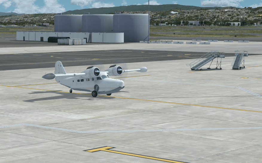 Ich habe hier eine Default Grumman Goose mit „create“ generiert, positioniert und mit einem Flugplan versehen. Sofort nach abspeichern wird der Flugplan aktiviert und der AI Flug läuft an.