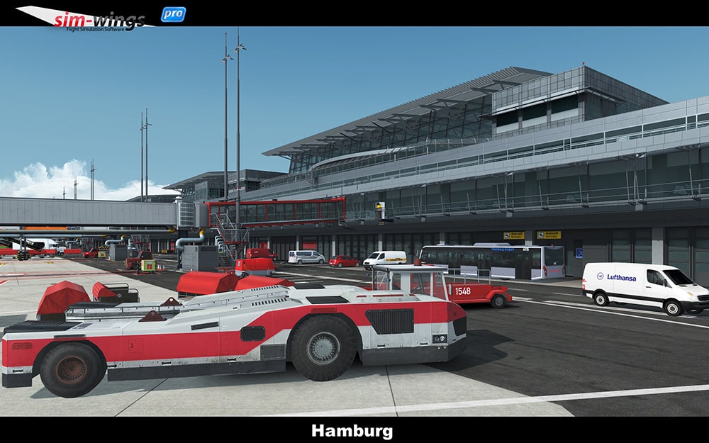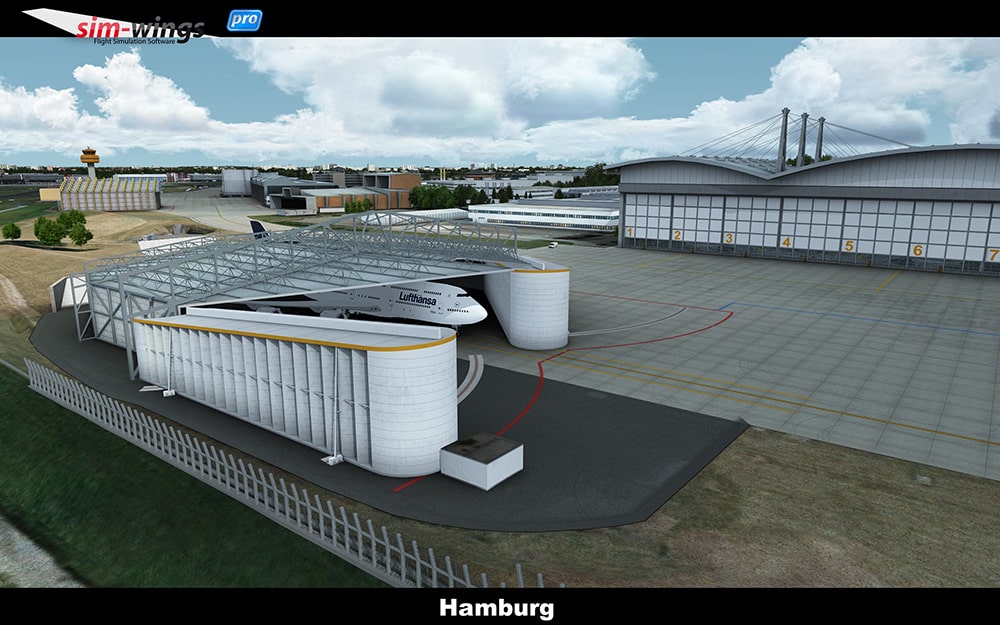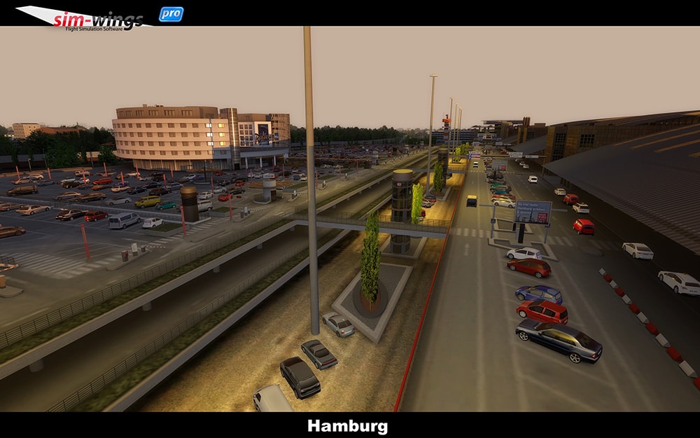 - Realistischer 3D-Boden mit Erhöhung für Lufthansa Werft, tiefergelegtem Autobahnzubringer und halb abgedeckter Autobahn