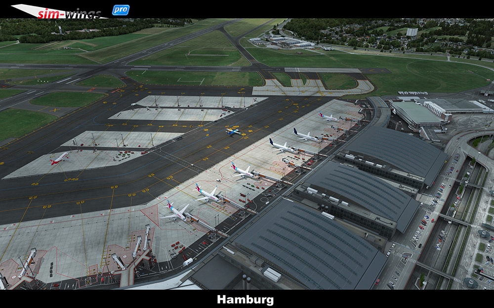 - Hochdetaillierte Szenerie vom Flughafen Hamburg und direkter Umgebung