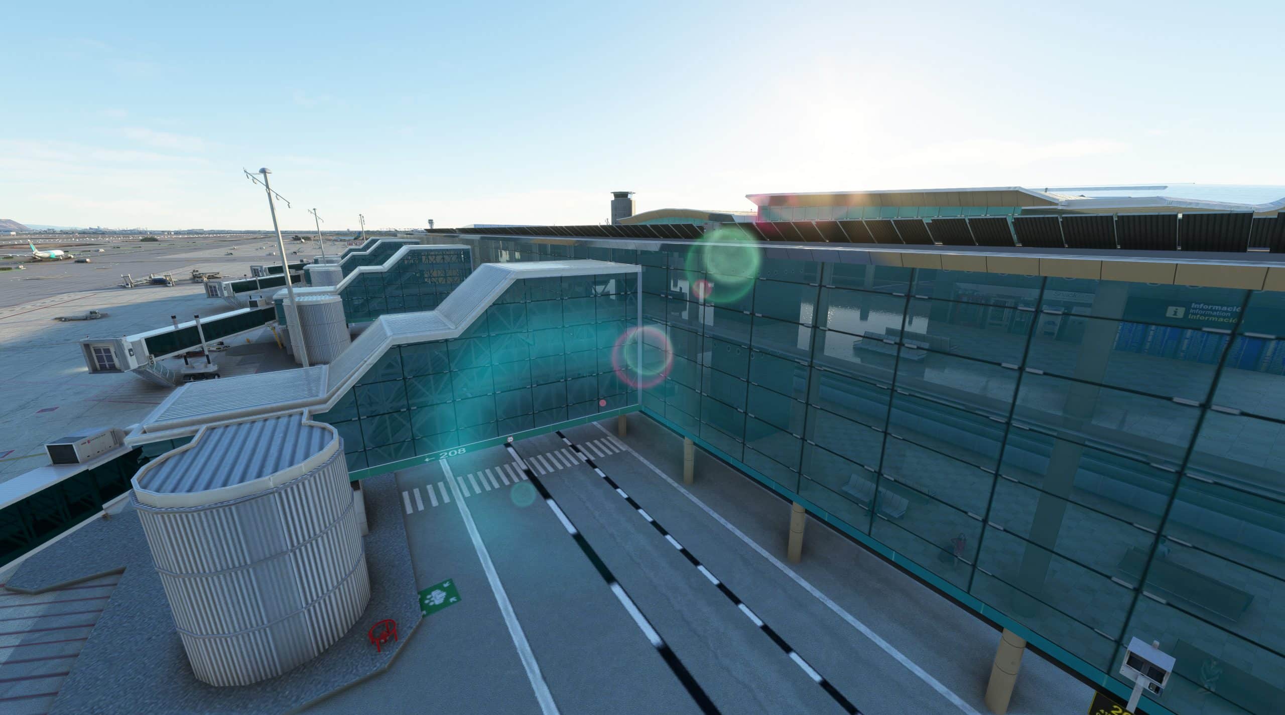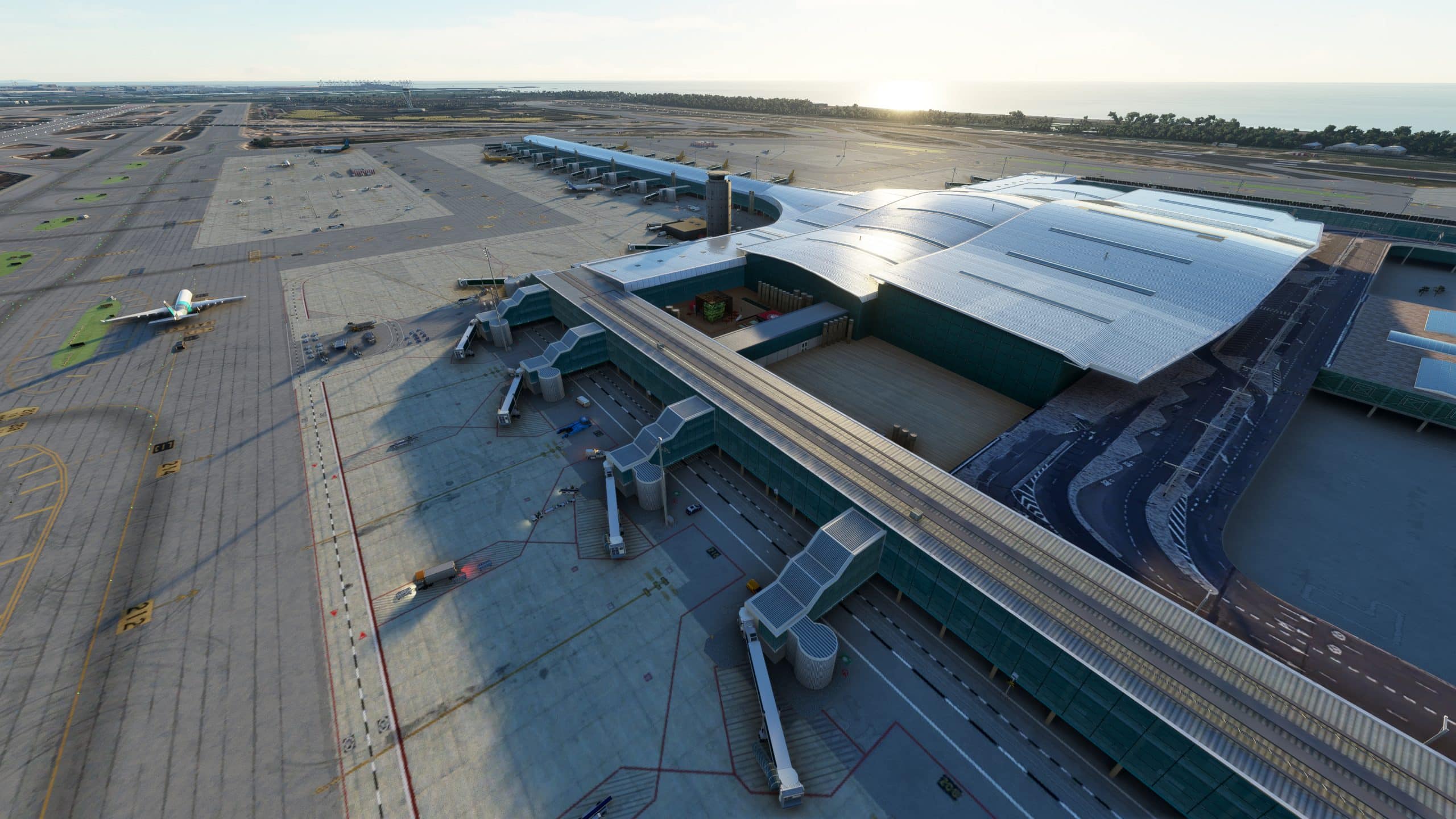 - Realistische Terminals, Cargo Gebäude und Airport Gebäude unter Benutzung von MSFS PBR Materialen.