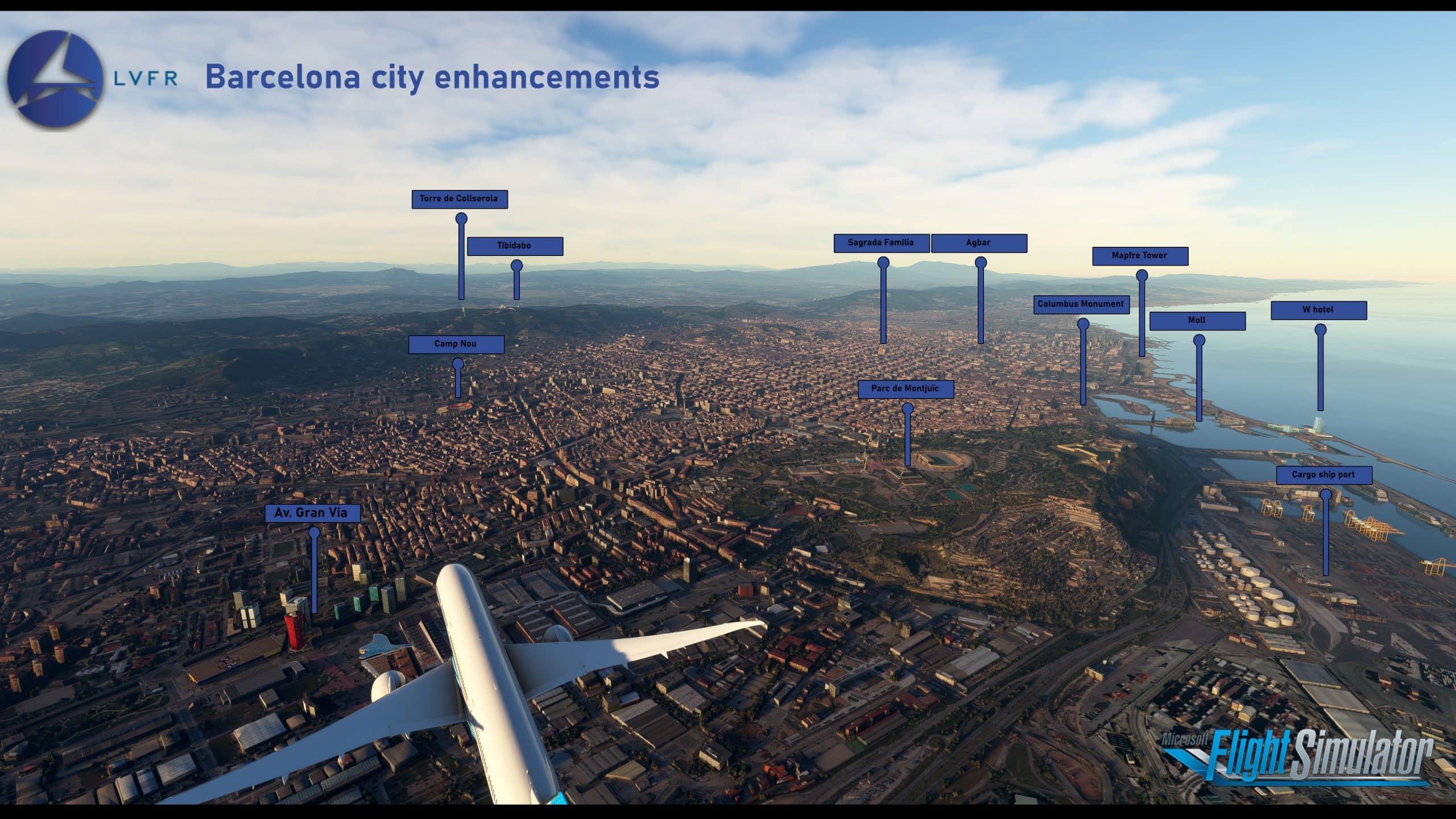 Zusätzlich zur sehr detaillierten Airport Umsetzung hat LatinVFR auch diverse Sehenswürdigkeiten in der City von Barcelona hinzugefügt.