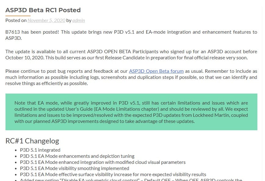 Obwohl die Software nun kompatibel ist, gibt es einige Einschränkungen zu EA (enhanced atmospherics) die im User-Guide erläutert werden. Diese wurden an Lookheed kommuniziert und man hofft auf eine Verbesserung mit dem nächsten P3D Update.