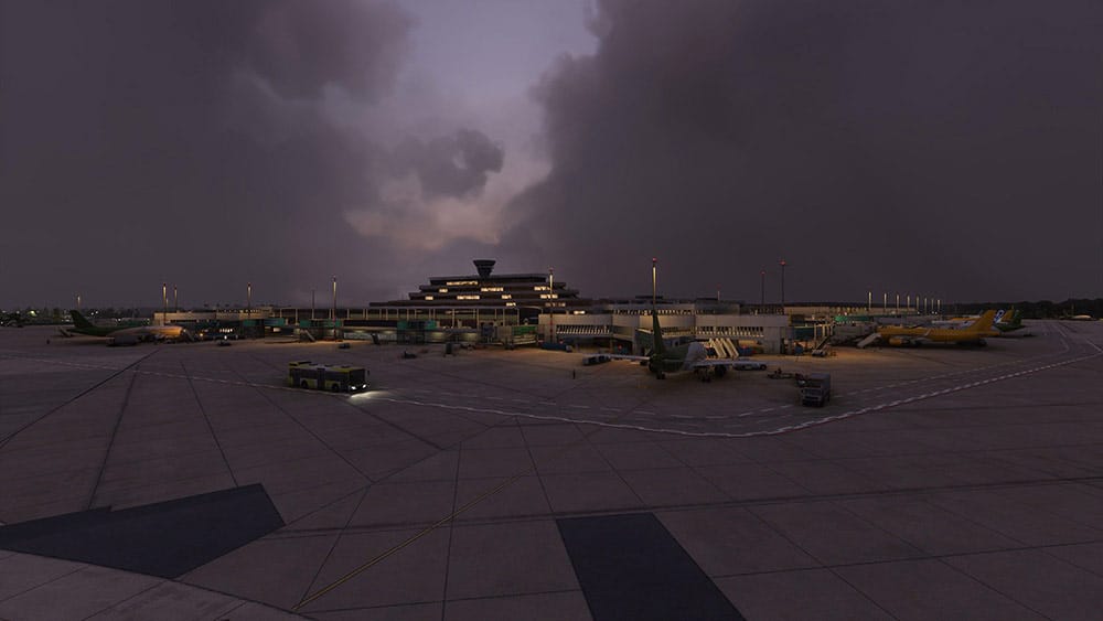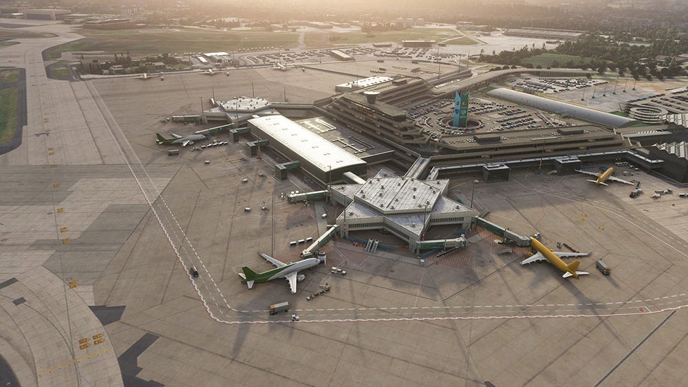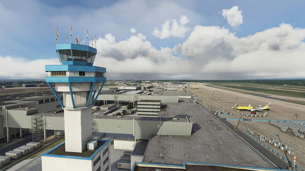 Aerosoft hat die Szenerie mit HD-Texturen, PBR Materialen und einem hochaufgelösten Luftbild ausgestattet. Auch die Umgebung des Flughafens wurde detailliert erstellt.