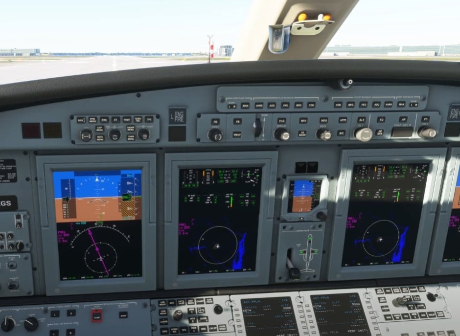 - FMS, AP panel, DCP, CCP, and soft buttons