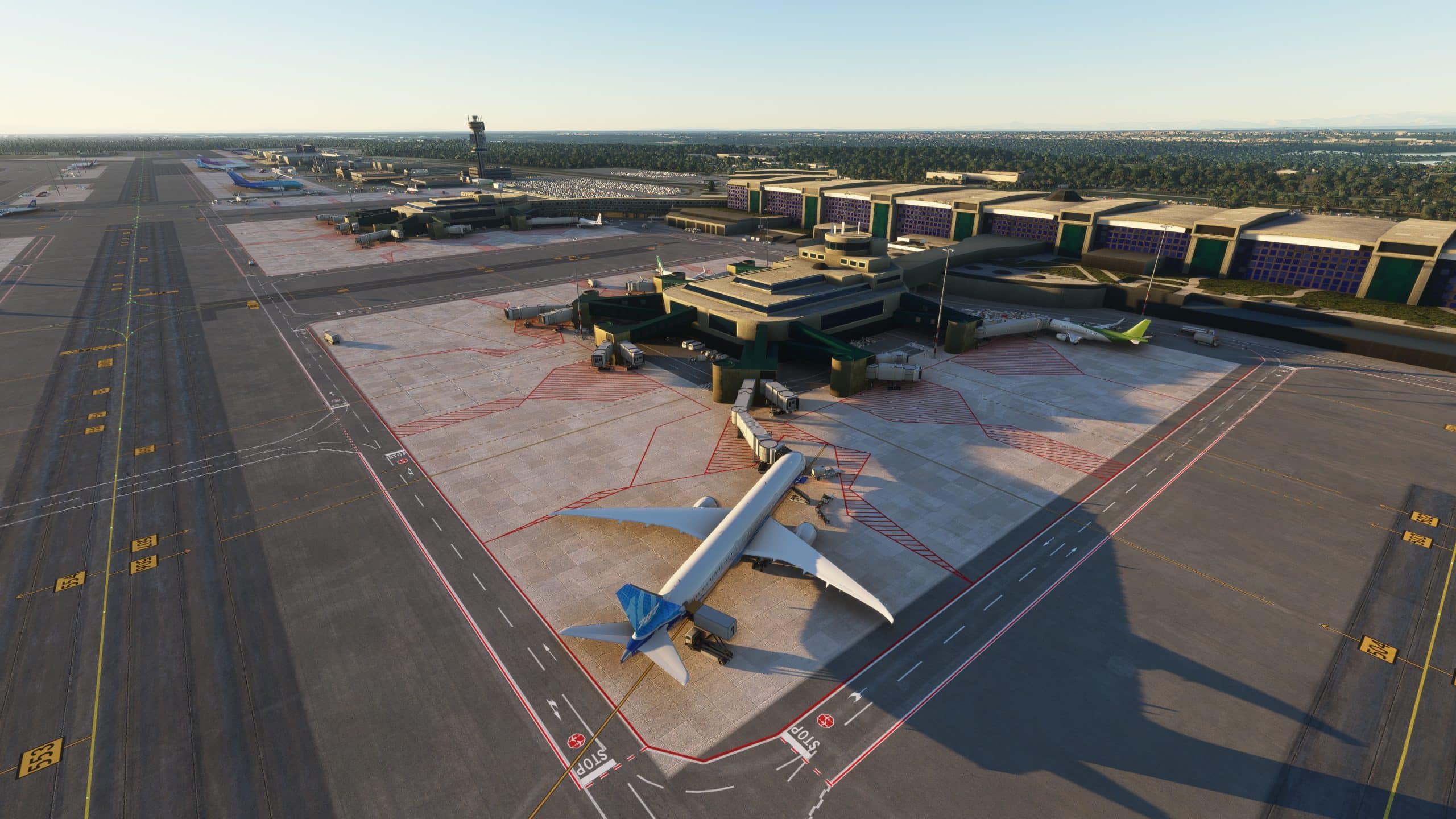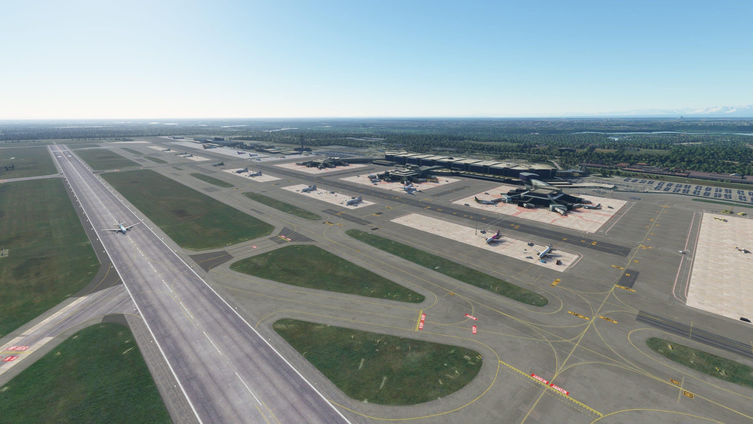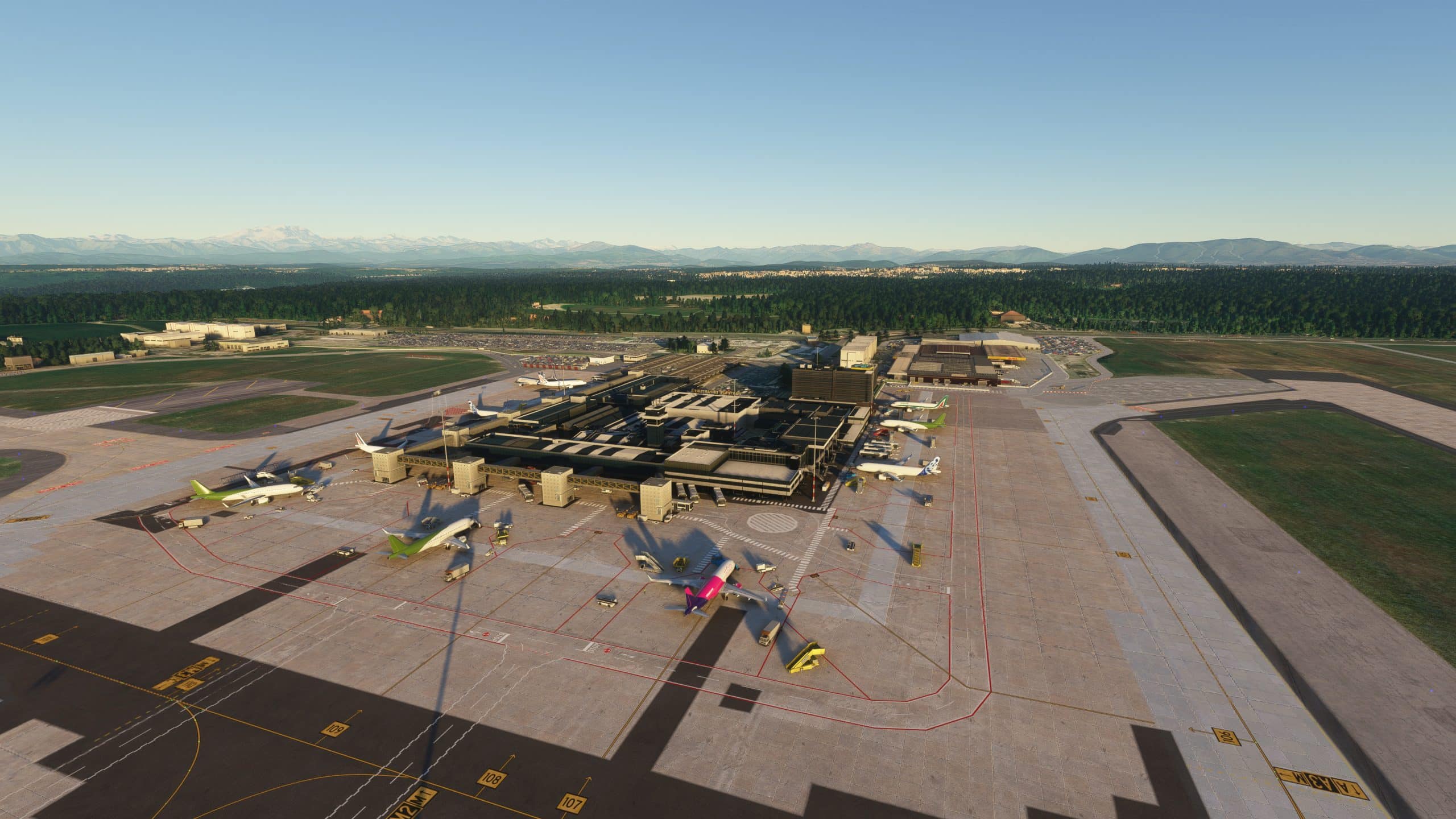 In Zusammenarbeit mit Dimitri Venezia konnten auch die Gebäude des Flughafens wie T1, T2, Cargo, Hangars, Feuerwehr und weitere originalgetreu nachgebaut werden.