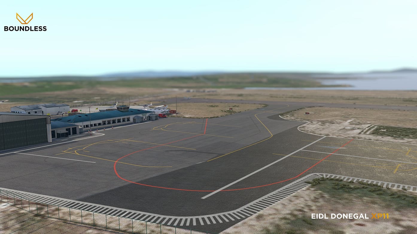 Der kleine Regionalflughafen von Donegal (EIDL) liegt auf einer Landzunge, eingerahmt von der Irischen See und einer Bucht, inmitten typisch irischer rauer Küstenlandschaft. In der Realität gibt es reguläre Verbindungen in die Hauptstadt Dublin und das schottische Glasgow. Aber auch GA-Flieger dürften angesichts der sich bietenden Panoramen gut auf ihre Kosten kommen.