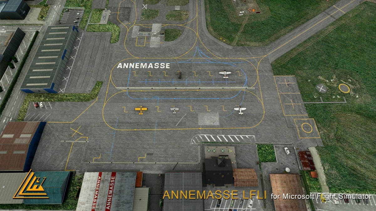 LLH Créations hat ANNEMASSE (ICAO: LFLI) für den Microsoft Flight Simulator veröffentlicht. Der Flugplatz, der zu Ehren des ersten Fluglehrers des Clubs Marcel Bruchon genannt wird, liegt südlich des Genfer Sees, am Fuße der Alpen. Er verfügt über eine asphaltierte, in Ost-West-Richtung ausgerichtete Start- und Landebahn (12/30), mit einer Länge von 1300 Metern und einer Breite von 30 Metern.