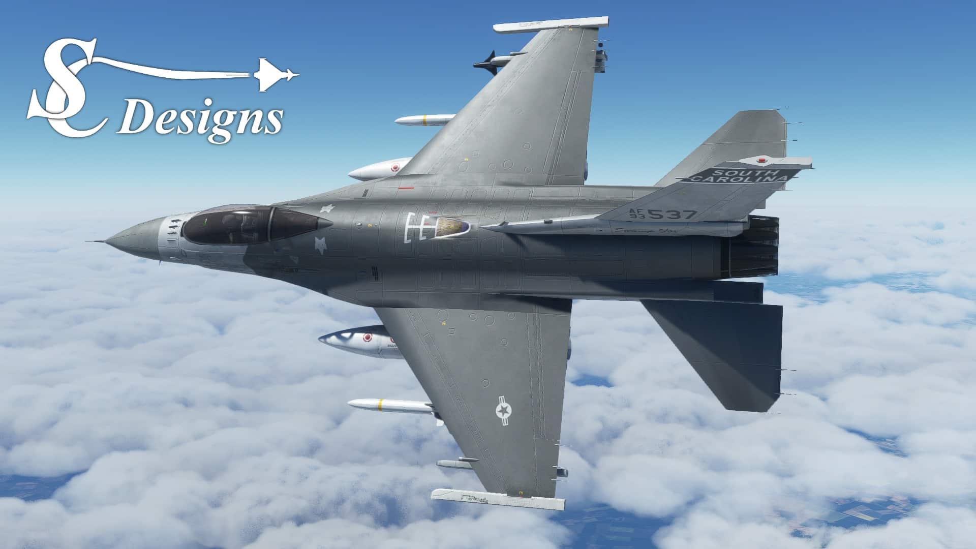 SC Designs nimmt sich der Varianten F-16C und D an und arbeitet im engen Austausch mit DC Designs, wodurch die Qualität des Addons auf ähnlichem Niveau der Produkte dieses Entwicklers liegen sollte. Details sind kaum bekannt – allerdings sprechen die Entwickler davon, den gleichen System- und Aerodynamic-Umfang zu bieten, wie DC Designs kommende F-14. Auch soll eine Fehlersimulation möglich sein.