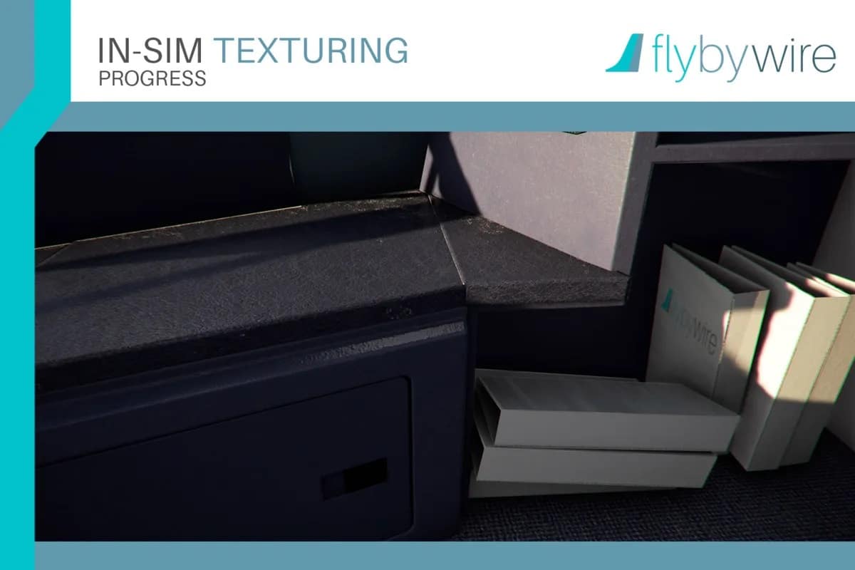 Die neuen Aufnahmen zeigen zum ersten Mal das komplette Außenmodell des Flugzeugs für den Microsoft Flight Simulator, wobei die Bilder mit Vorsicht zu genießen sind, da es sich um ein WIP handelt und die Texturen vorrausichtlich noch nicht komplett abgeschlossen sind. Die Detailverliebtheit zeigt sich zudem in einem weiteren Bild, in welchem Ordner aufgereiht und umgekippt zu sehen sind.