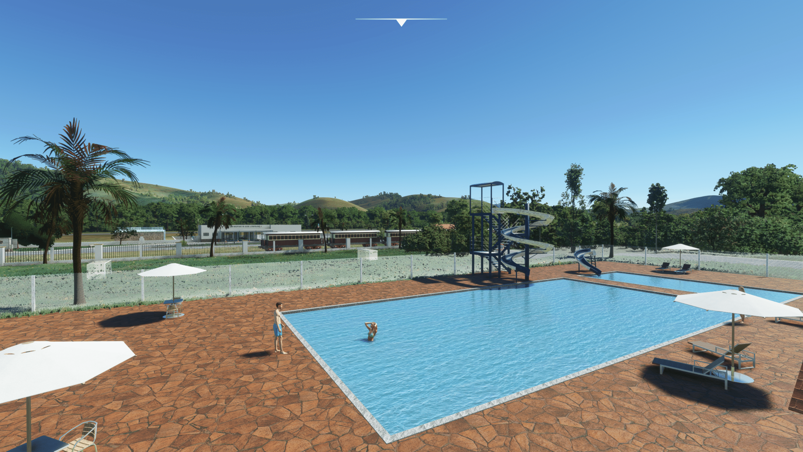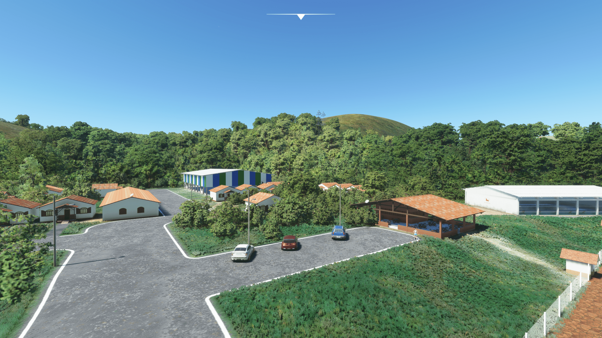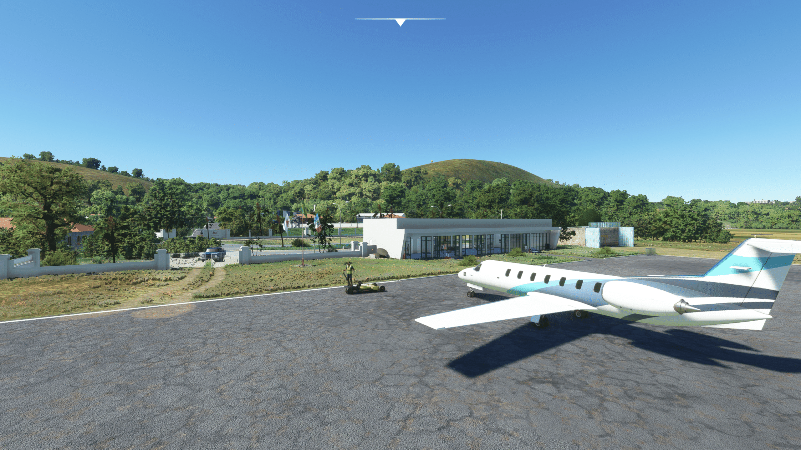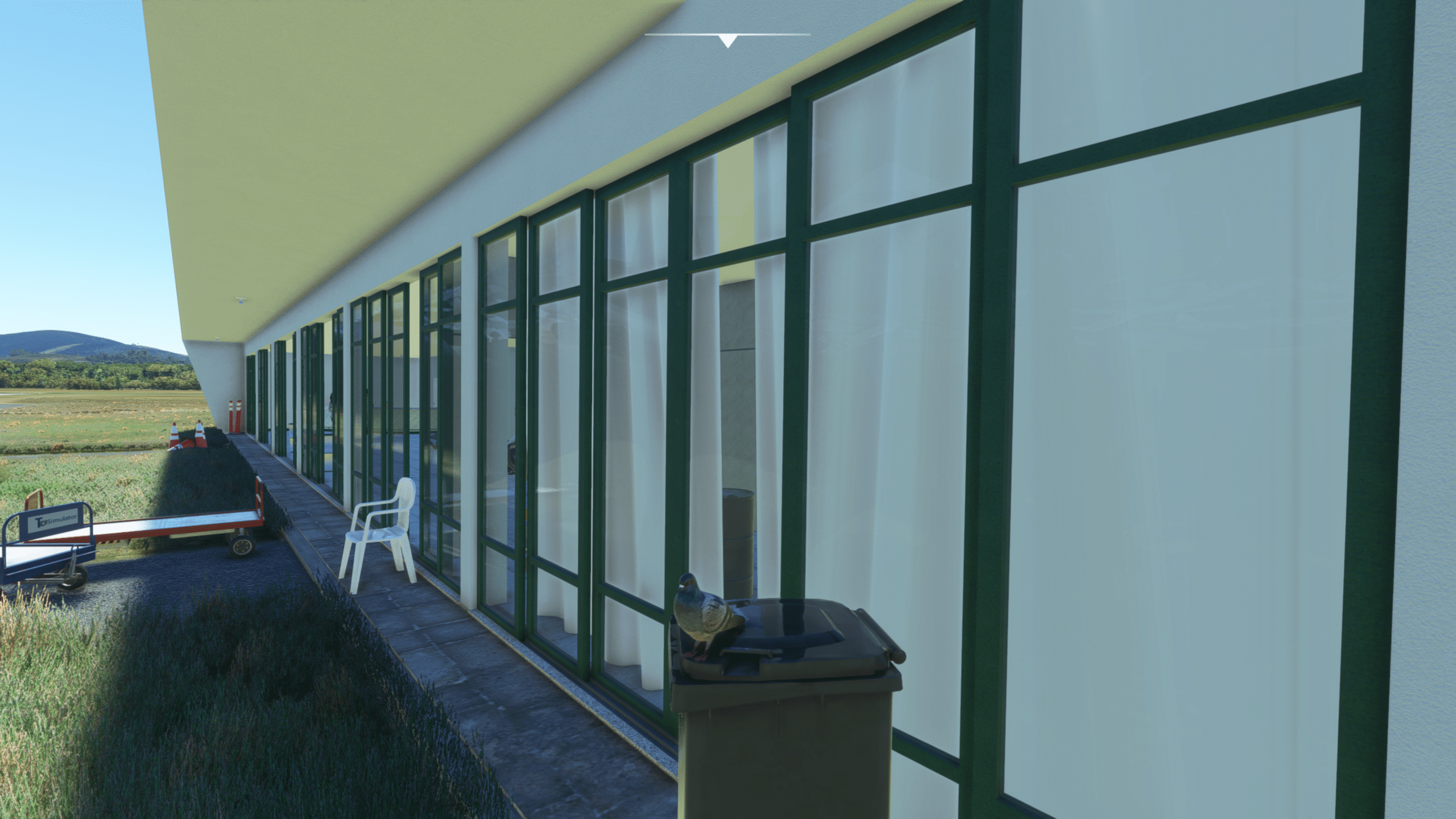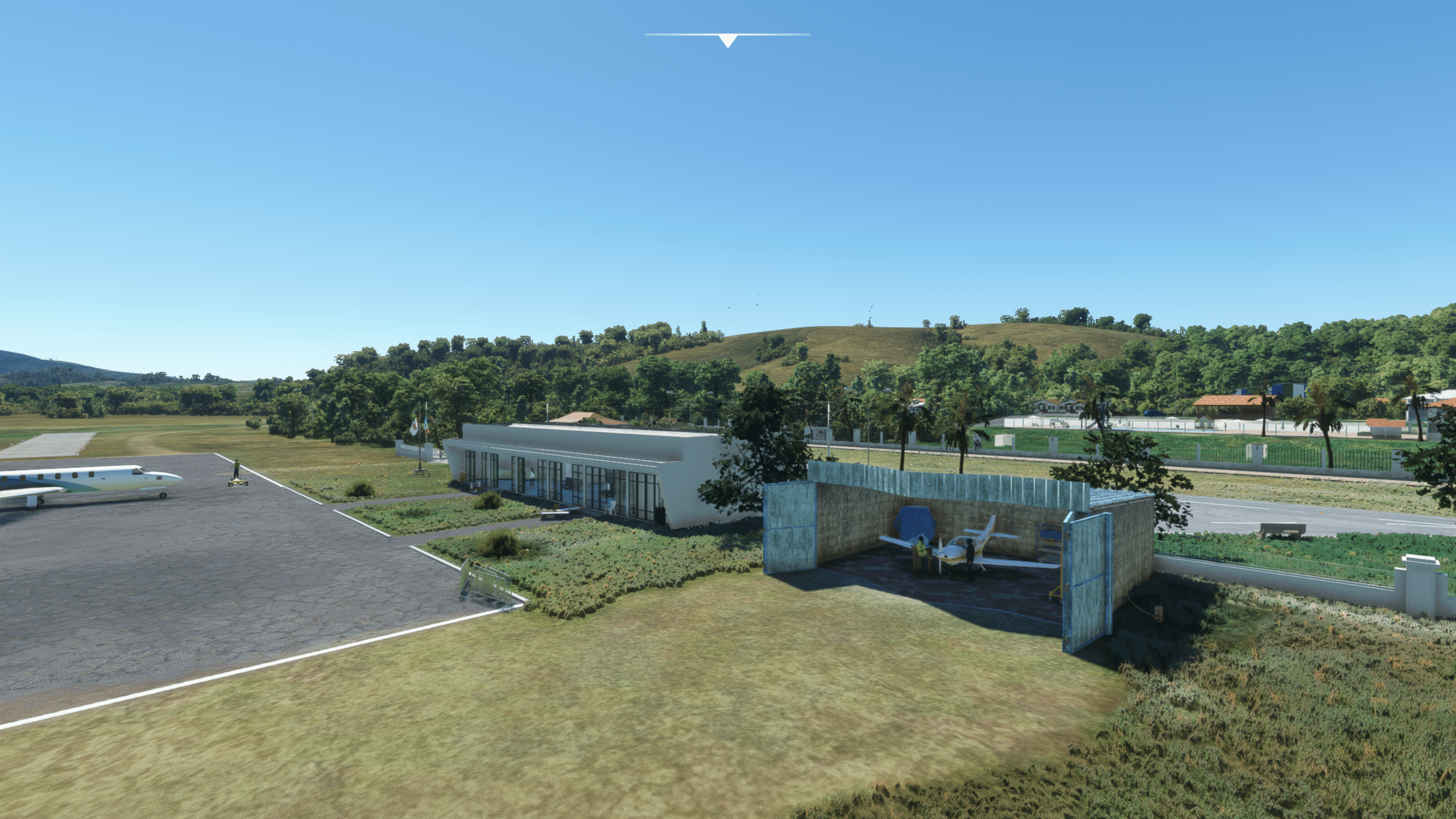 Der Flugplatz von Sao Lourenco liegt nördlich des Ortes, verfügt über eine 1300 m lange Landebahn, eingebettet in eine nette Hügellandschaft. Viel ist hier nicht zu sehen, aber das was da ist ist extrem detailliert dargestellt. Es gibt: Ein wirklich kleines Empfangsgebäude, das im Wesentlichen aus einem Tresen und Toiletten besteht, zwei Hangars, ein wenig herumliegendem Baumaterial, Windsack, und das war’s eigentlich.