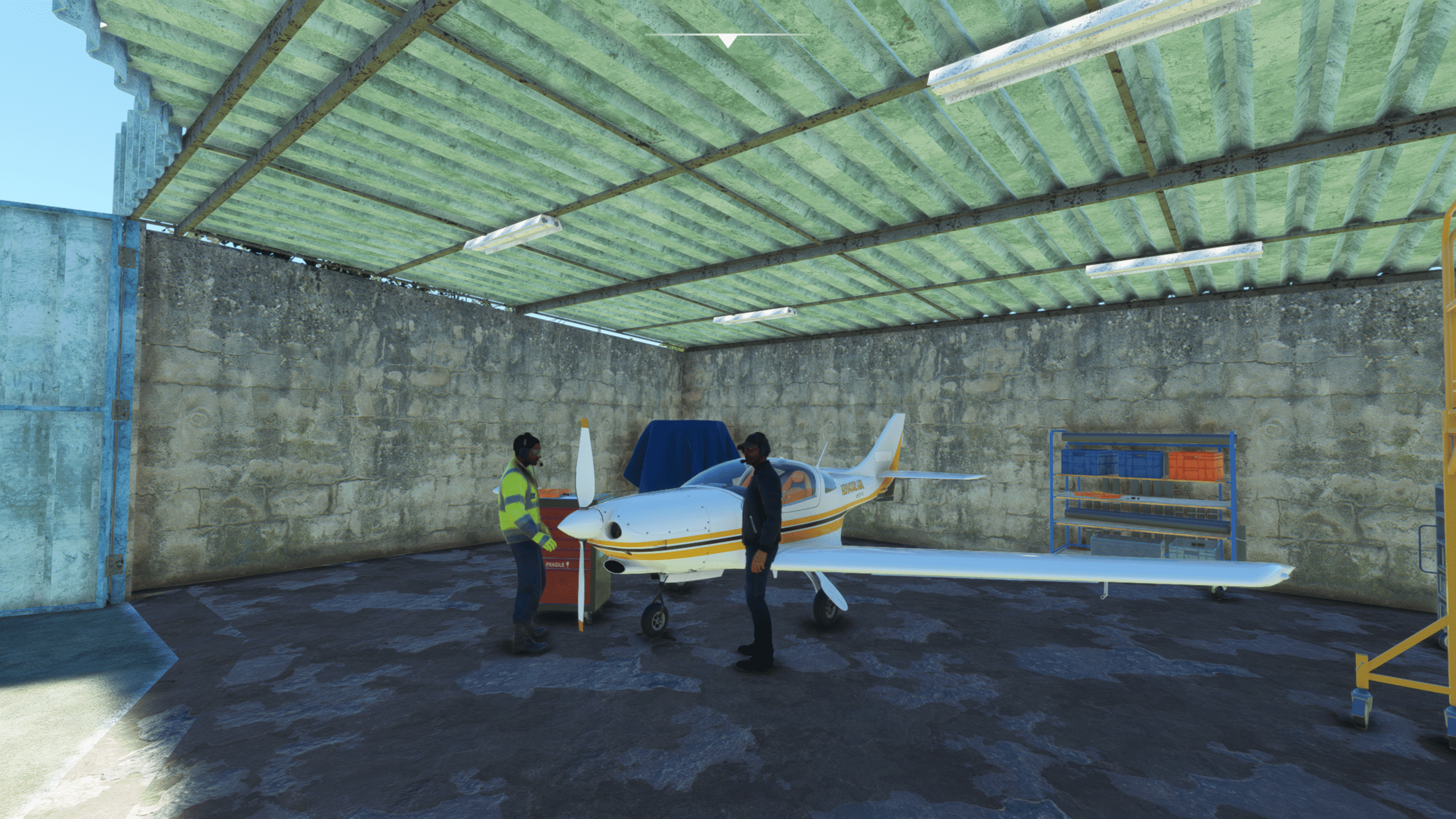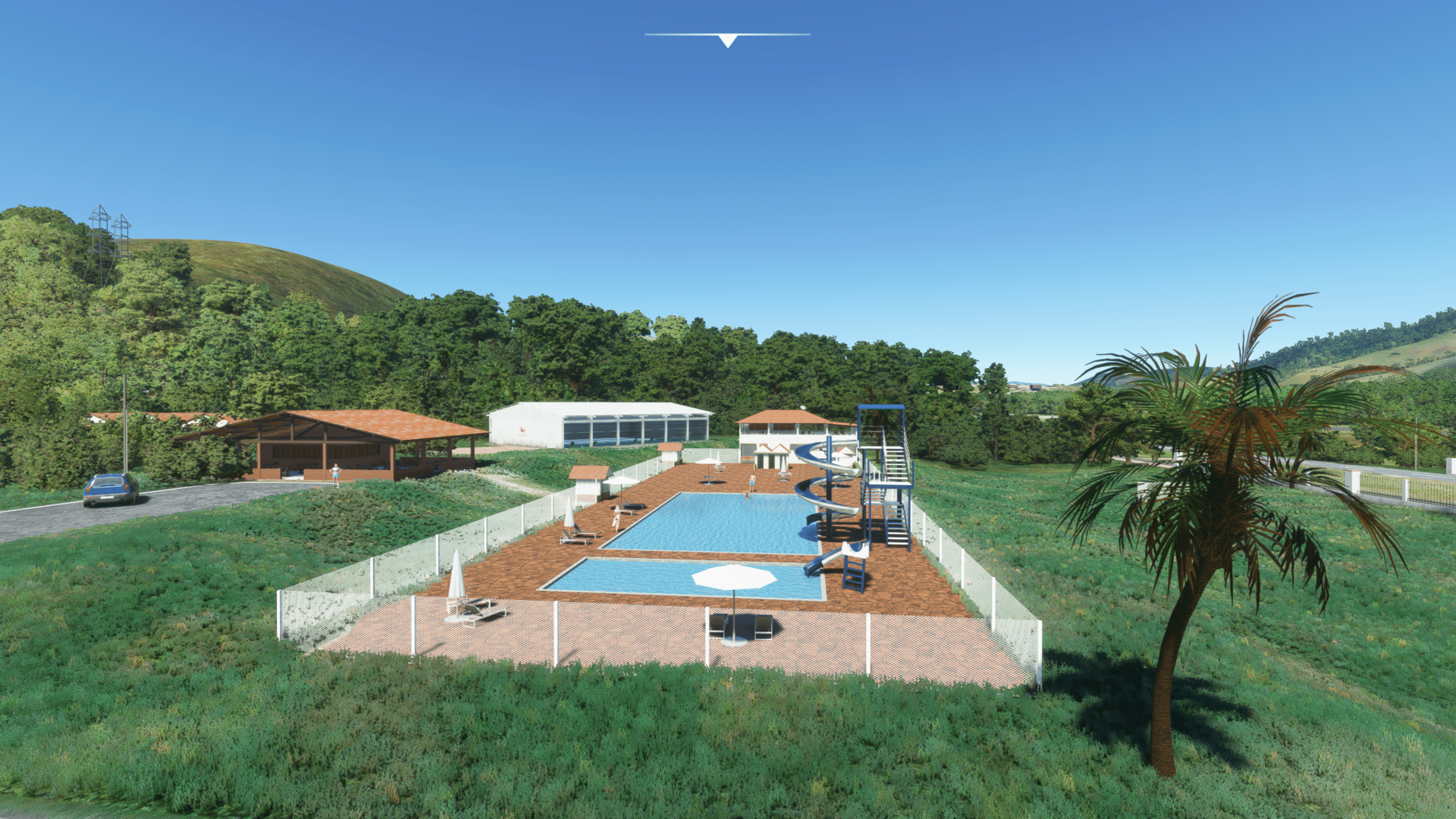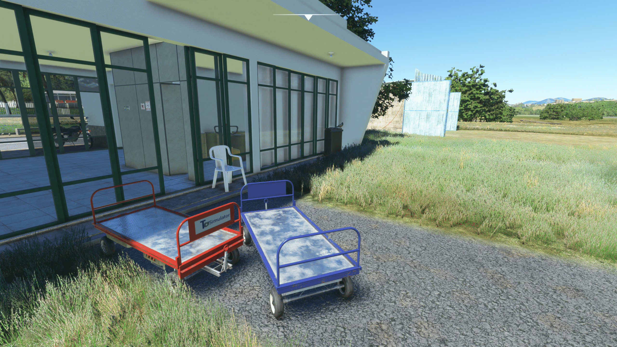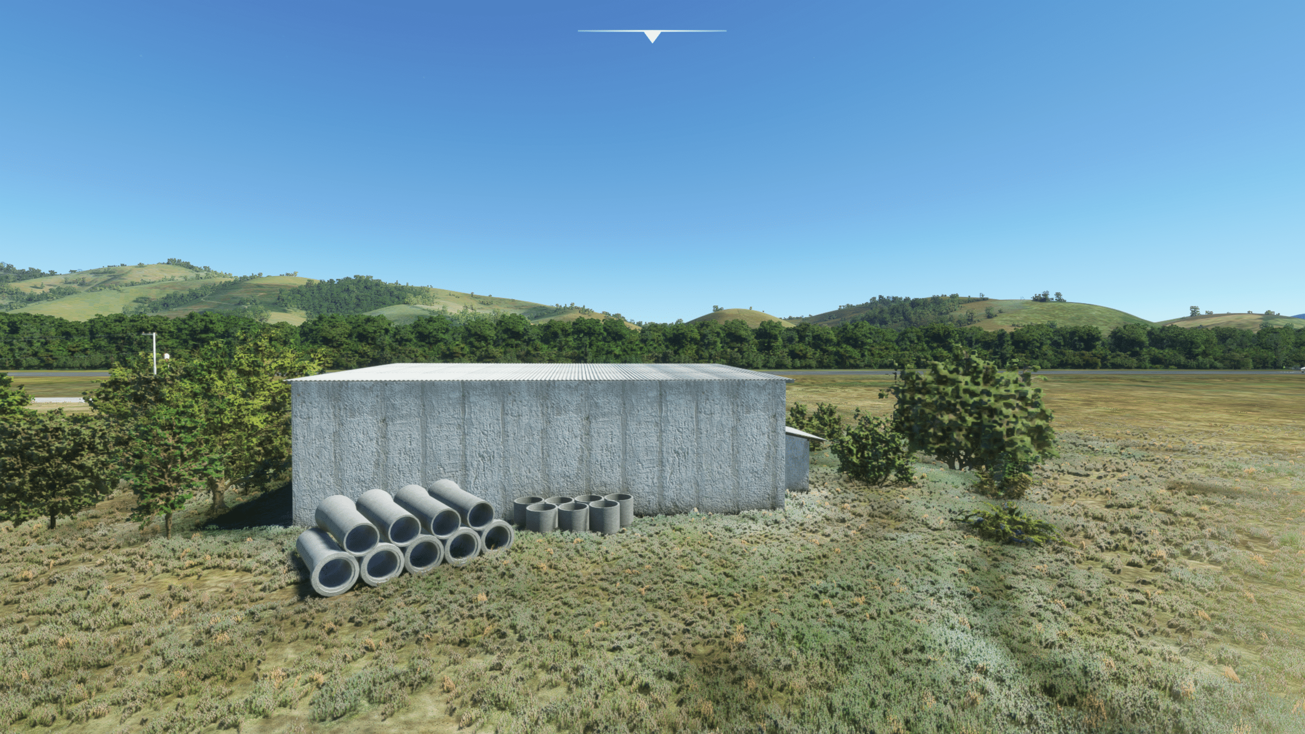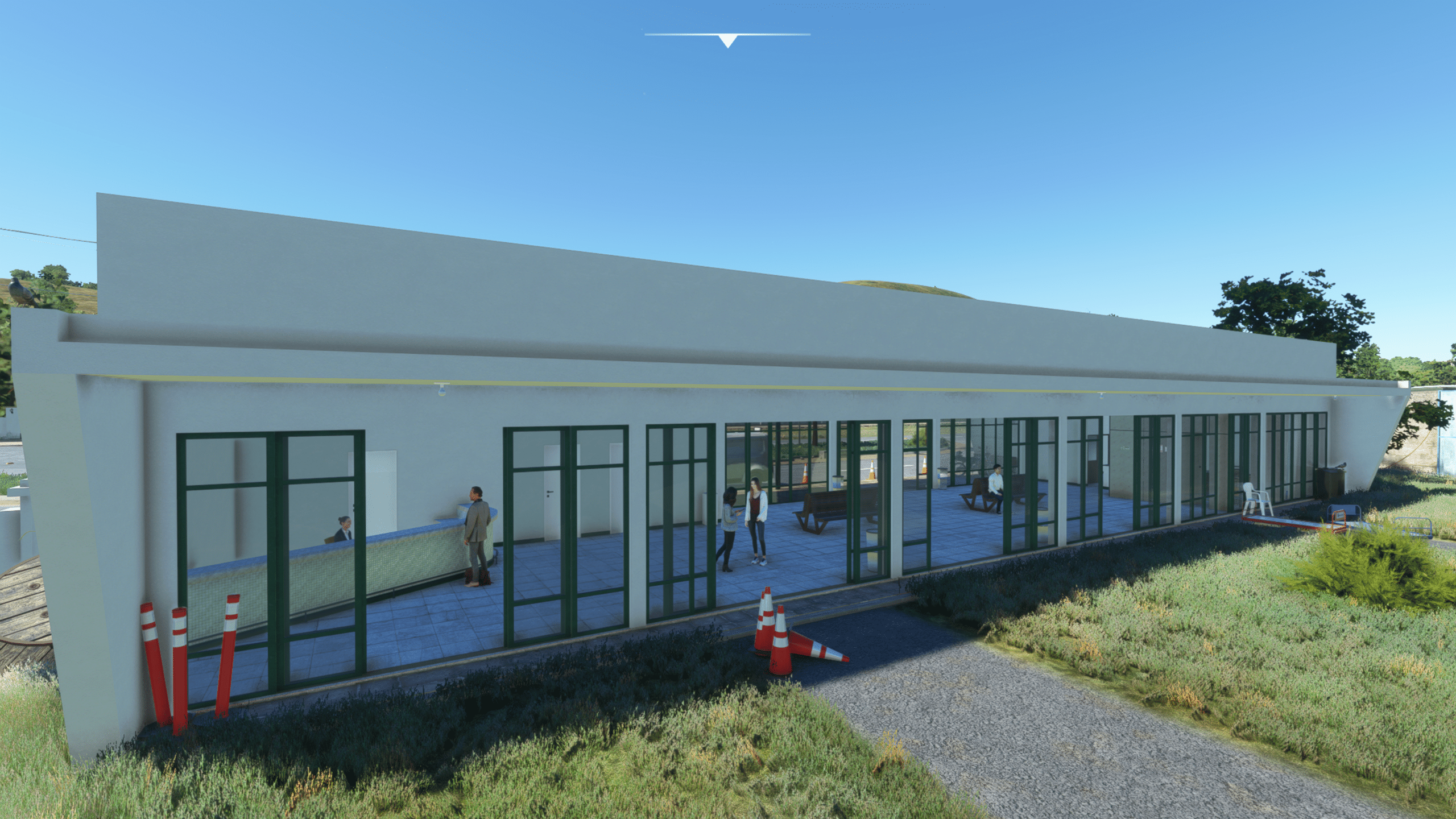 Der Flugplatz von Sao Lourenco liegt nördlich des Ortes, verfügt über eine 1300 m lange Landebahn, eingebettet in eine nette Hügellandschaft. Viel ist hier nicht zu sehen, aber das was da ist ist extrem detailliert dargestellt. Es gibt: Ein wirklich kleines Empfangsgebäude, das im Wesentlichen aus einem Tresen und Toiletten besteht, zwei Hangars, ein wenig herumliegendem Baumaterial, Windsack, und das war’s eigentlich.