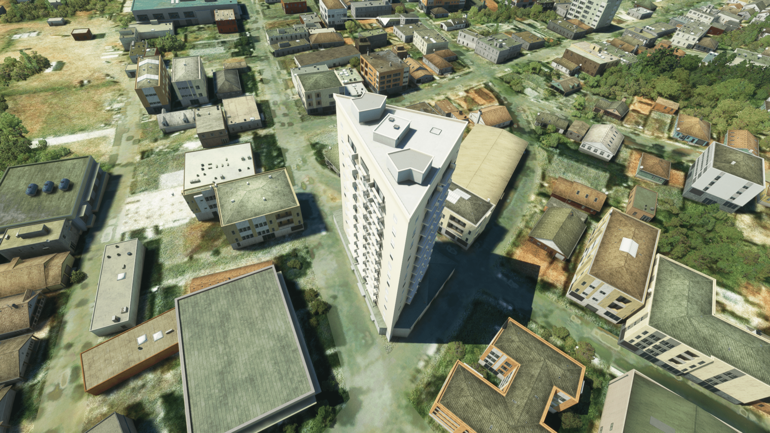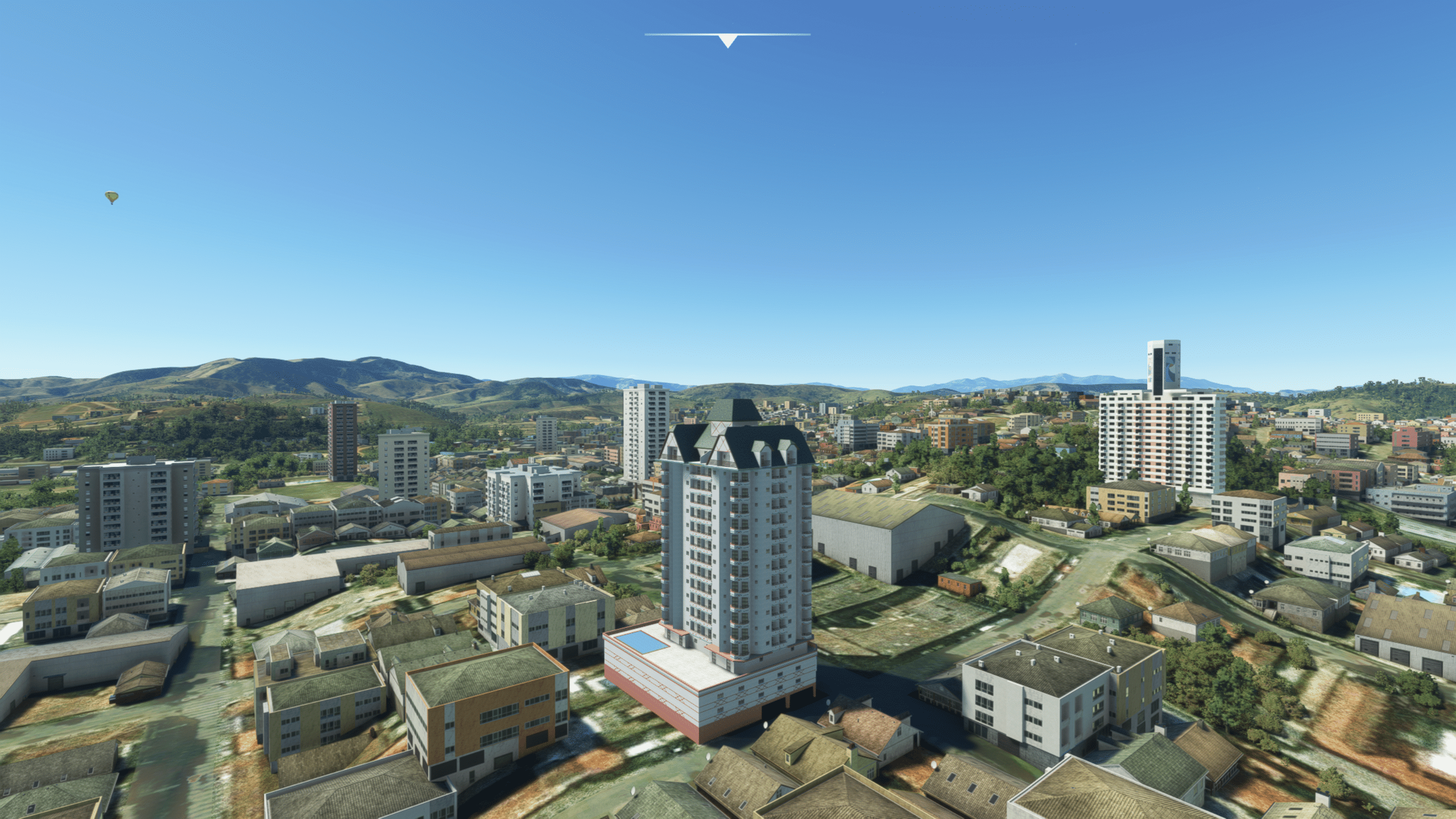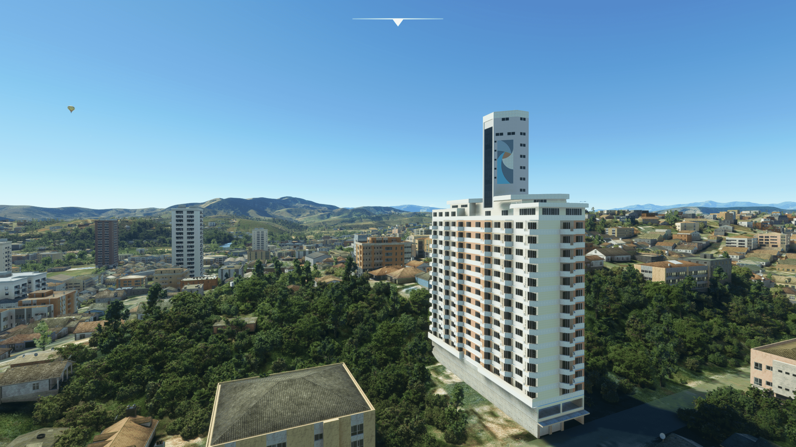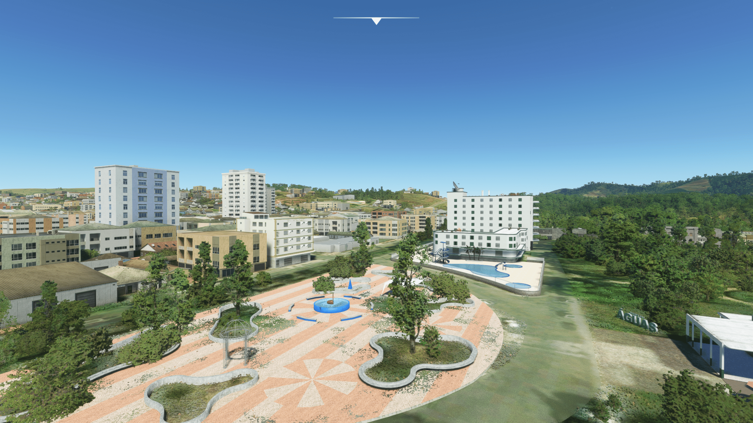 Die Stadt ist dicht gepackt mit Wohn- und/oder Hotelhochhäusern, es gibt einen Fluss und dazwischen auch den netten Park zu entdecken. Wie gut das getroffen ist kann ich nicht sagen, es sieht zumindest nach Wikipedia plausibel aus. Und ist natürlich ein riesiger Fortschritt gegenüber dem Standard-MSFS, der hier nur mit AI-generiertem Autogen ausgestattet ist.