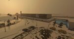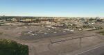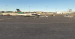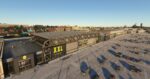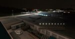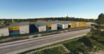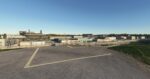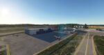 Auch wenn aus meiner Sicht der Flughafen nicht unbedingt der Star dieses Add-Ons ist – schauen wir uns mal an, was es hier zu sehen gibt. Das Terminal ist eher unspektakulär: Das Hauptgebäude ist von weitem betrachtet eher ein Quader, die Flugsteige sind einfache Gänge, die aufs Vorfeld herausführen.