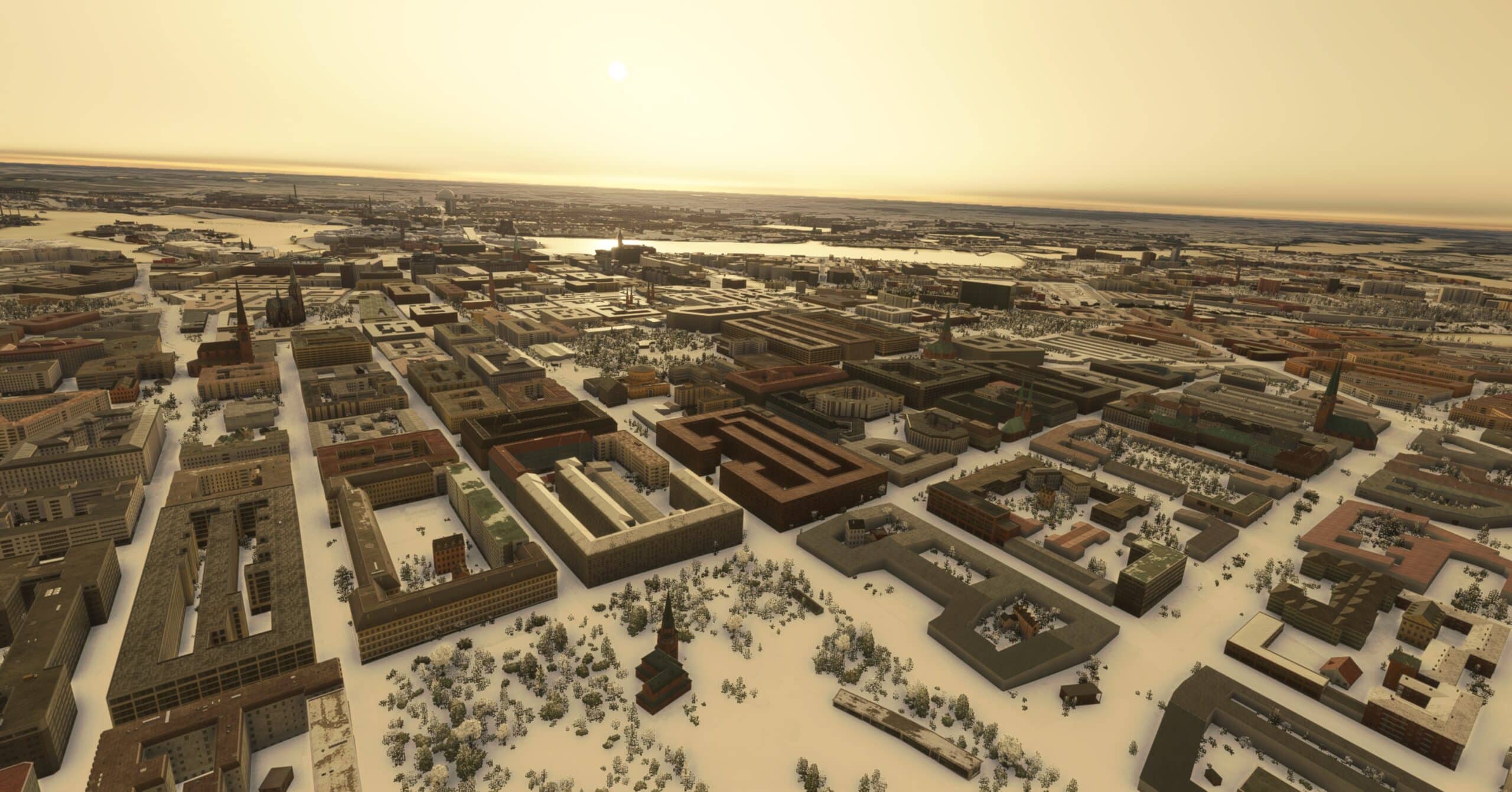 Das war das Mornington Hotel Bromma, das ich hier modelliert in Orbx‘ Version von Stockholm-Bromma ganz prominent wiederfinde, diesmal aus einer leicht anderen Perspektive. Bromma ist einer der letzten Innenstadtflughäfen in Europa, der noch in Betrieb ist – leider nicht mehr lange, sagt Wikipedia. Gelegen nordwestlich der Innenstadt, bietet sich vor allem dem Copiloten ein wunderbarer Anblick auf die Innenstadt von Stockholm. Das nordische World Update des MS FS hat leider zwar an dieser wunderschönen Stadt nichts verbessert, aber Marcus Nyberg, der Designer des Produkts, hat eine wunderbare Stadt-Flughafen-Szenerie gebaut, die uns das vergessen lässt. Und seit dem Update auf die Version 1.1 gibt es sogar noch den Flughafen Visby dazu, den Marcus (in Skandinavien wird ganz generell der Vornamen benutzt) schon für Prepar3d umgesetzt hatte, und den ich mir auch schon angesehen hatte. Von Bromma nach Visby sind es knappe 200 km, nach Kopenhagen etwa 500, und zum Umparken nach Stockholm-Arlanda nur gut 30 km.