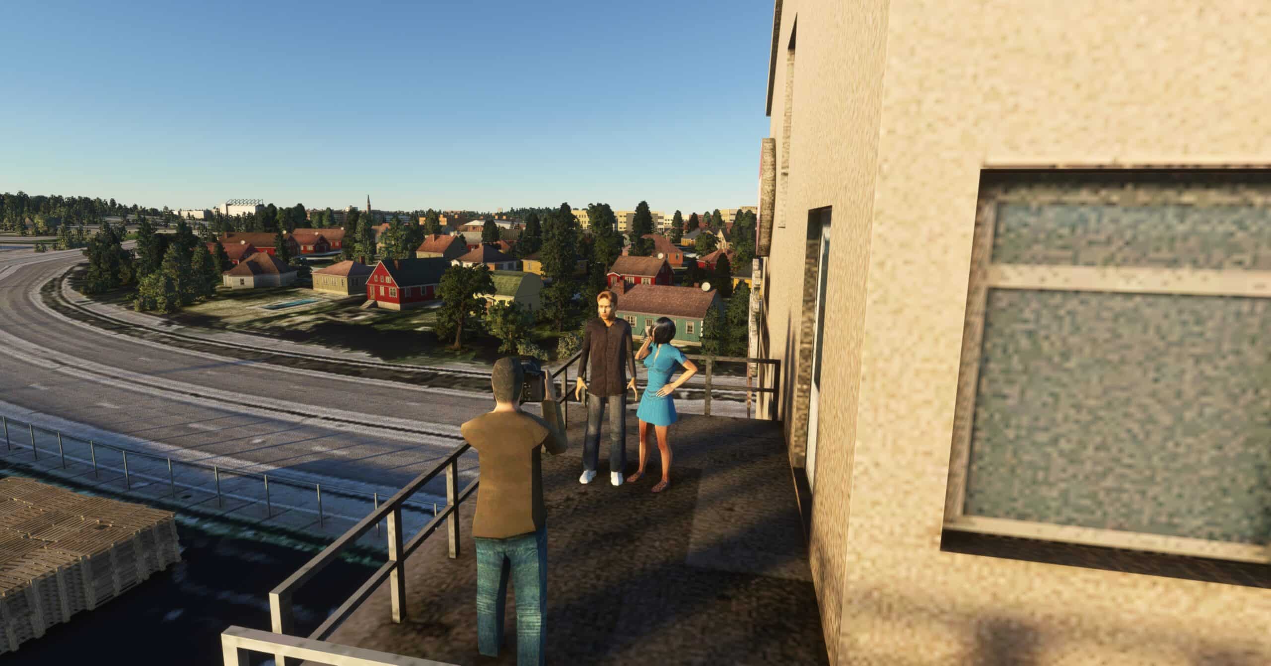 Der Knaller ist natürlich die direkte Umgebung des Flughafens. Die alten Hangars nahe des Terminals sind mittlerweile ein Einkaufszentrum, es gibt diverse Industriegebäude, ohnehin das rote Hotel genau im Endanflug. Schön auch die Details wie das Fotoshooting auf dem Balkon des Flughafenhotels. Hier gibt es einiges zu entdecken.