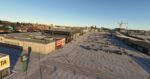 Etwas interessanter ist es am nördlichen Ende, hier sind einige Hangars, ein Baustoffhändler direkt am Flughafenzaun, und die schöne Radar-Antenne auf einem Hügel.