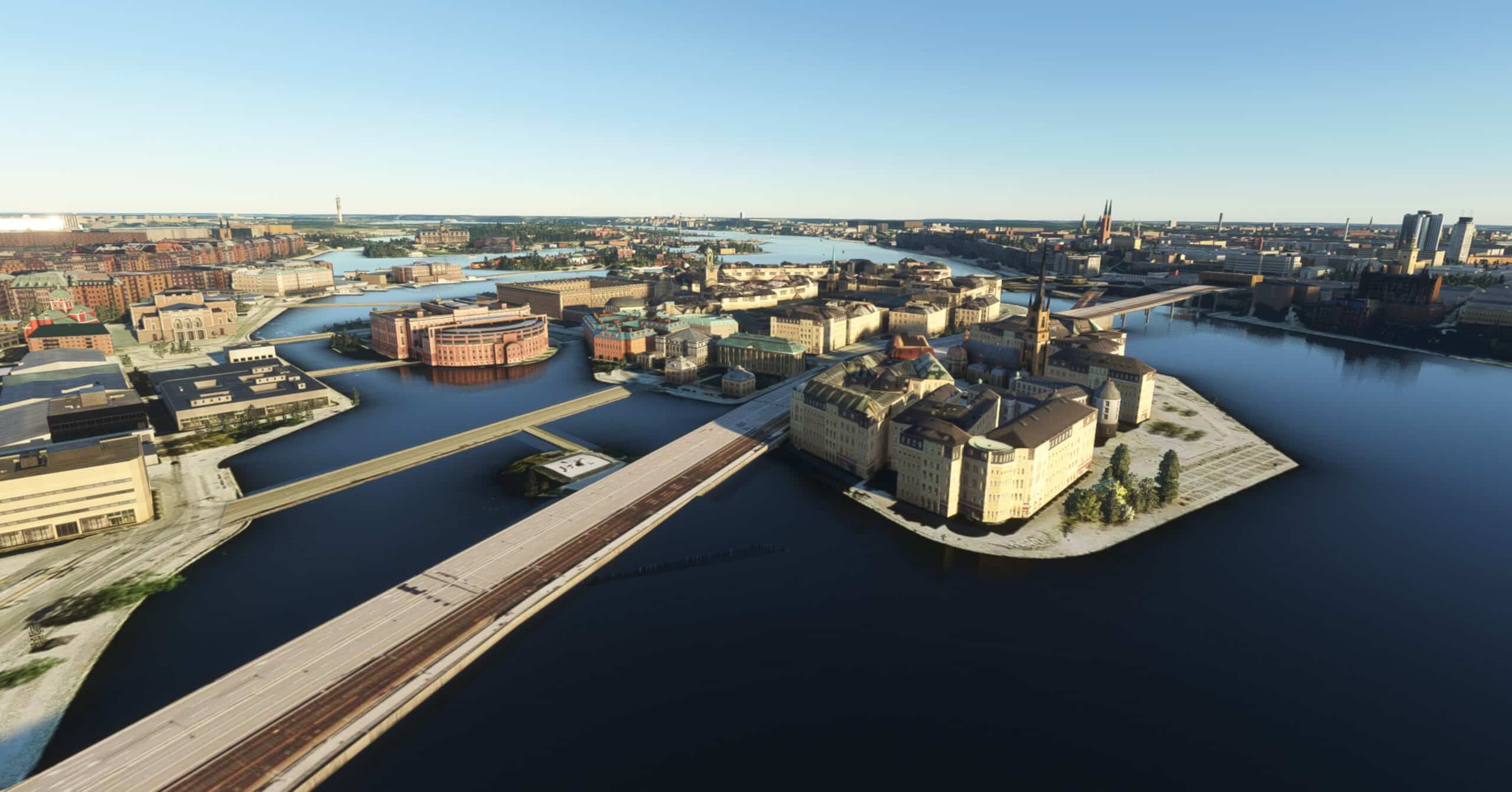 Kurz: Orbx verspricht ein Modell des Flughafens mit 4K-Texturen und geneigter Landebahn, sehr detaillierte direkte Umgebung, mehr als 100 POI in der Innenstadt von Stockholm, eine neue Fototextur für Stockholm und Umgebung, und als Bonus noch Flughafen Visby auf Gotland.
