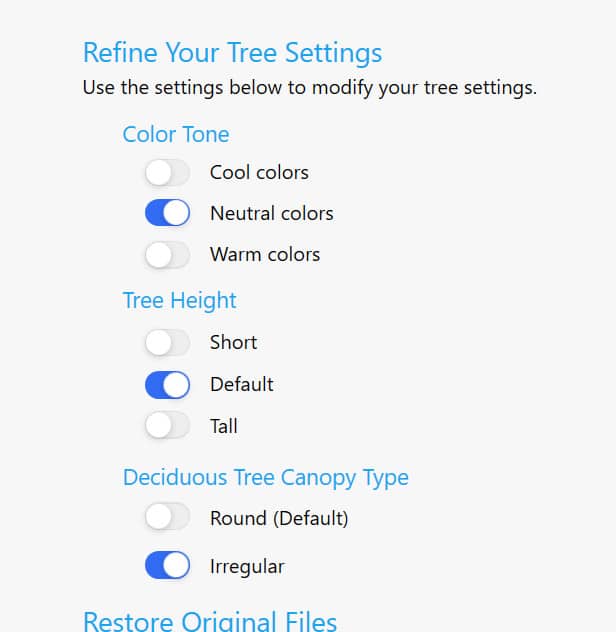 Das Rex Tool macht schon noch mehr. Man kann die Sättigung der Farben, die Baumhöhe und die Form der Bäume einstellen.