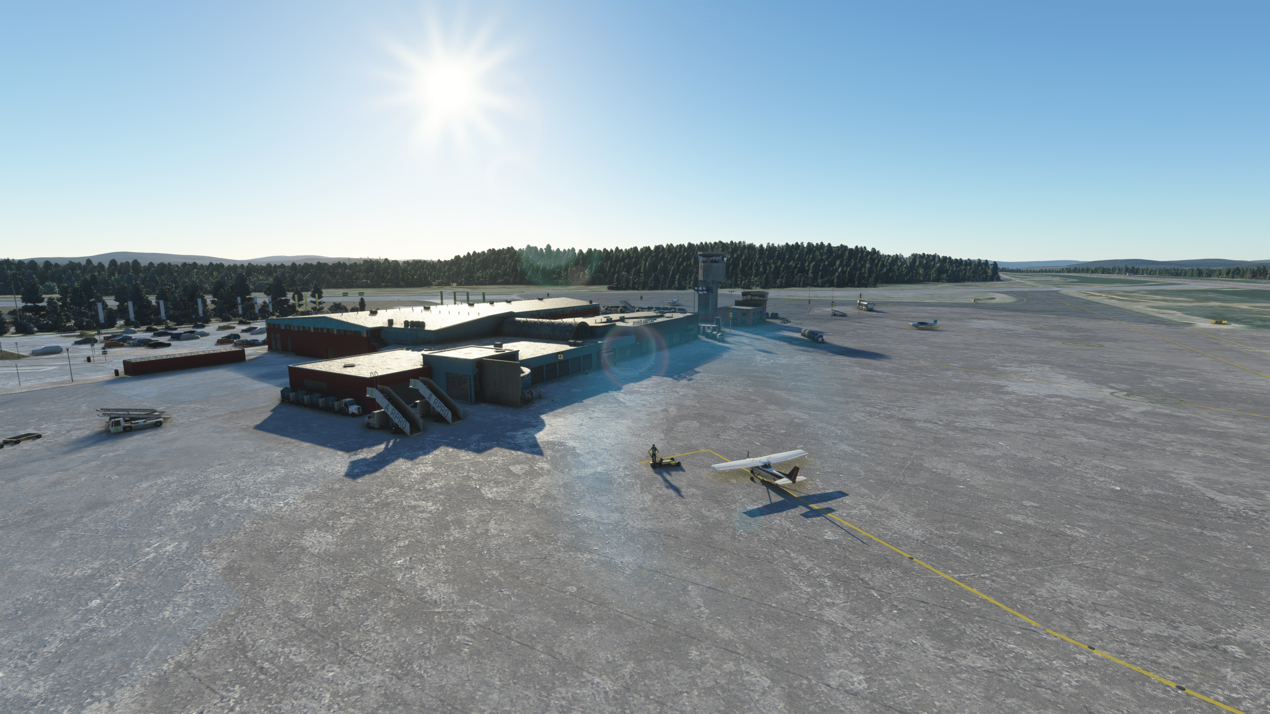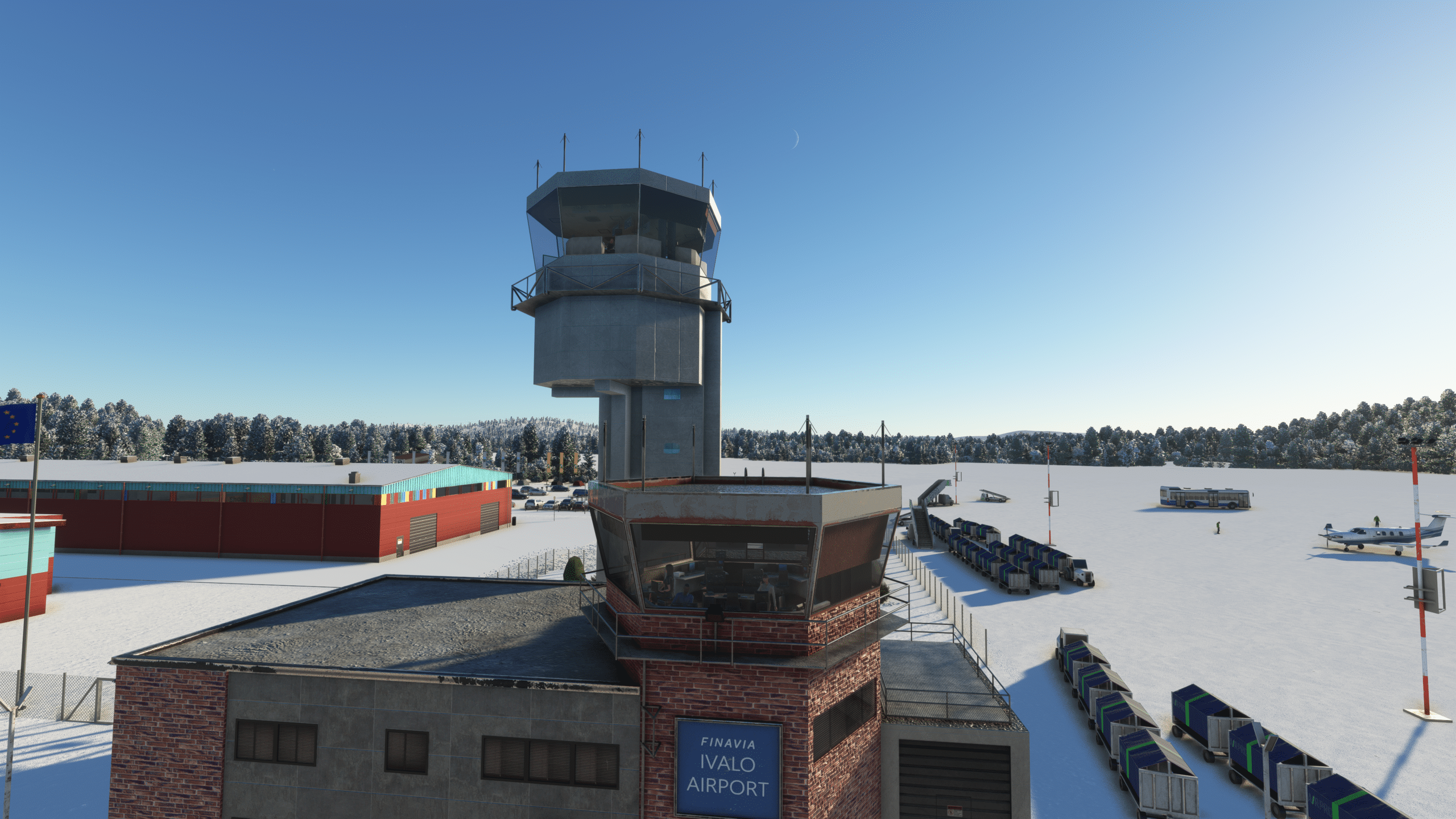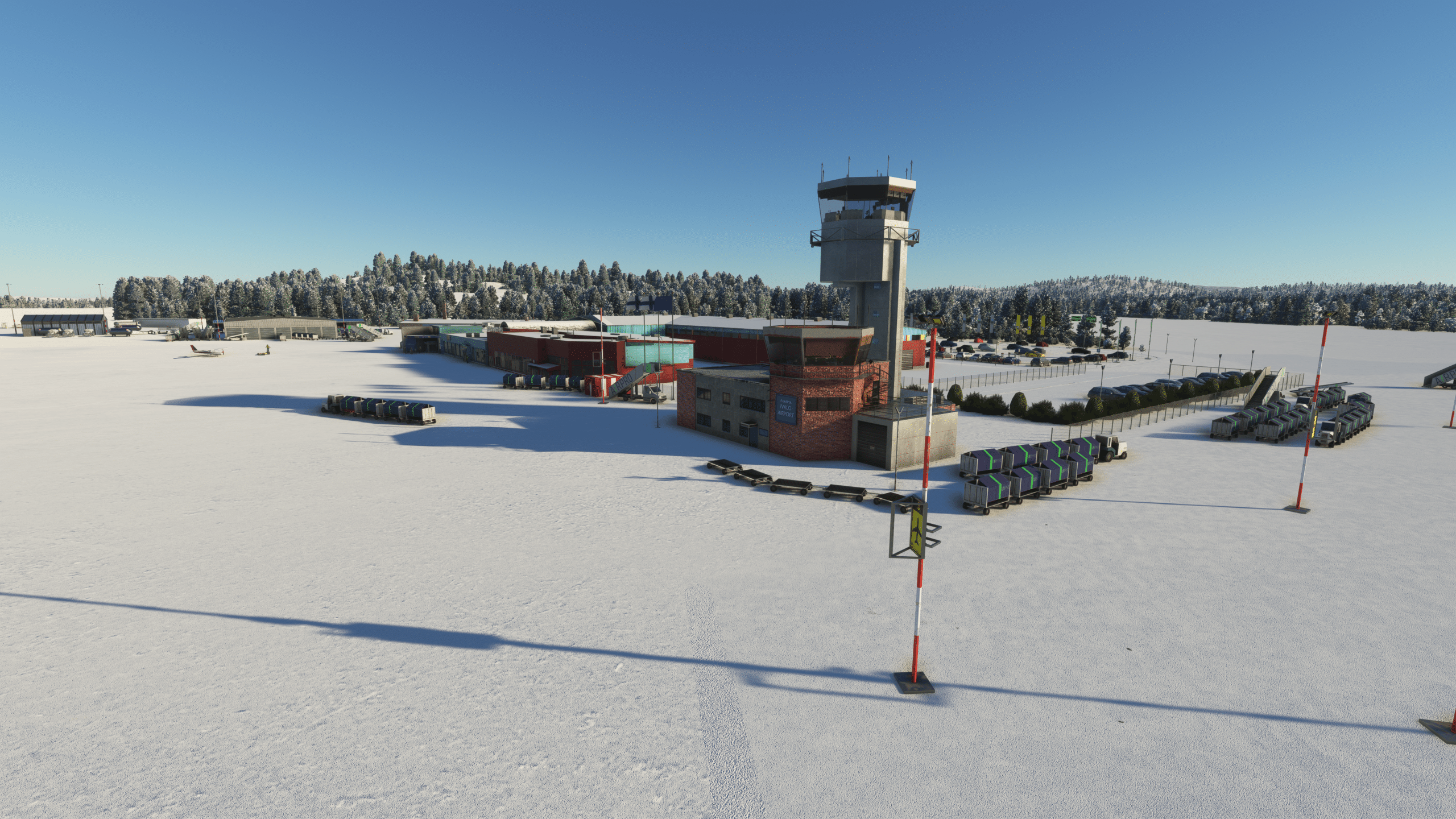 Ivalo ist ein kleiner Flughafen ganz weit im Norden, der ein schöner Anlaufpunkt für Touren nach und in Lappland ist. Sowohl im Winter als auch im Sommer ist die Landschaft faszinierend. Der Flughafen selbst ist eher klein, hier ist nicht sehr viel zu entdecken. Er ist grundsätzlich unspektakulär modelliert, aber im Innenraum (Terminal, Tower) sehr liebevoll detailliert. Dafür ist der große Schwachpunkt die blasse Farbgebung der Textur gegenüber der Umgebung im Sommer – das sieht nicht schön aus und fällt ziemlich auf.