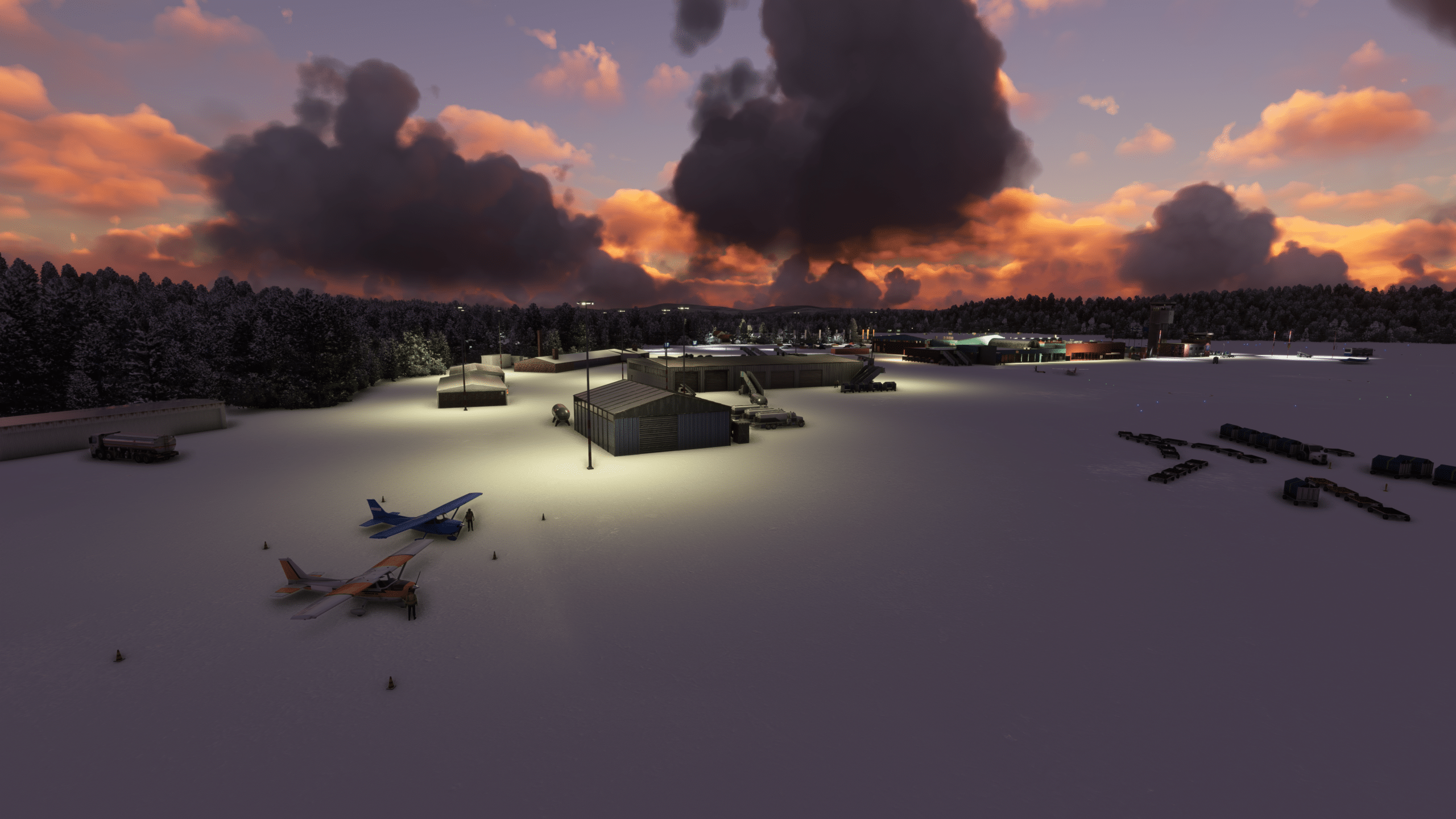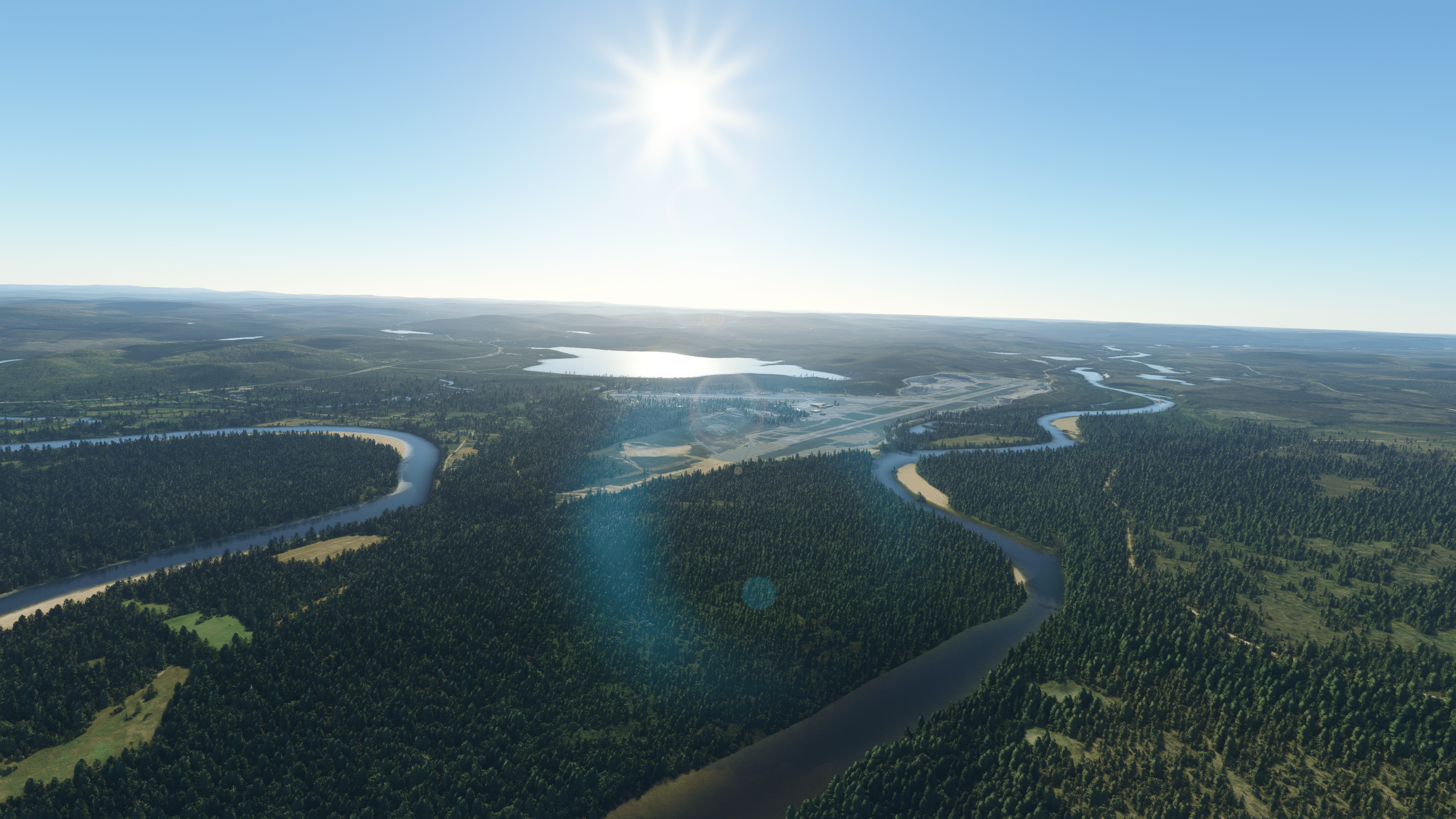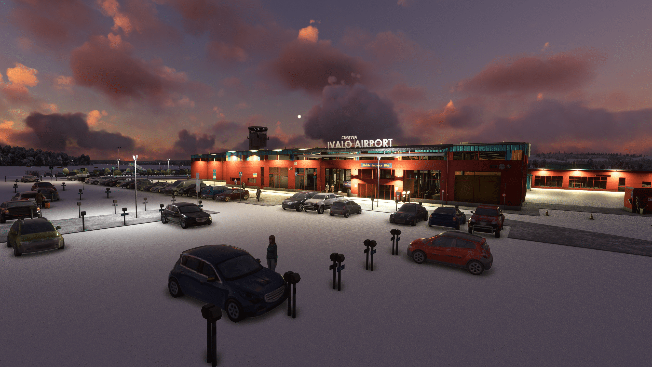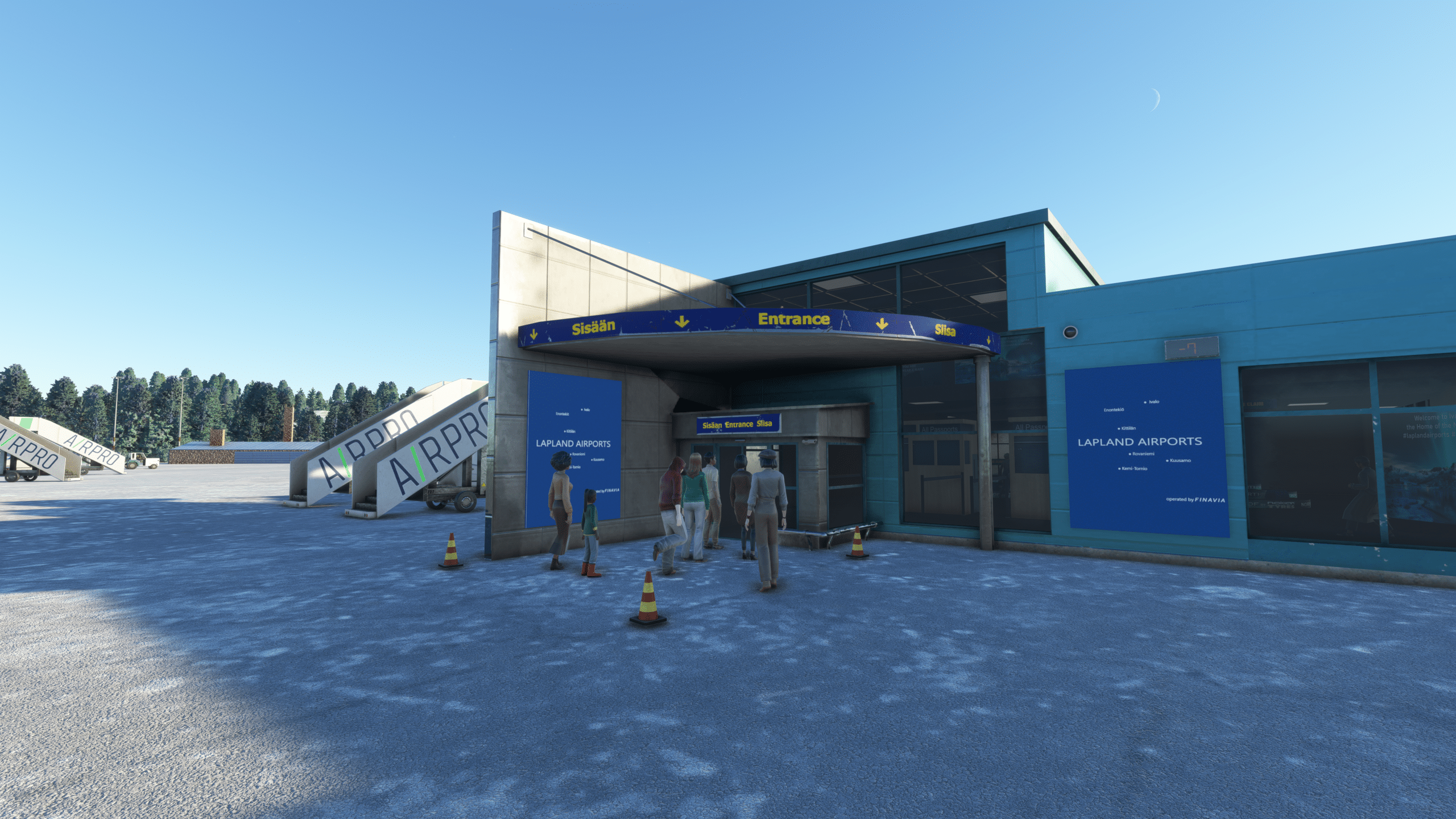 Ivalo ist ein kleiner Flughafen ganz weit im Norden, der ein schöner Anlaufpunkt für Touren nach und in Lappland ist. Sowohl im Winter als auch im Sommer ist die Landschaft faszinierend. Der Flughafen selbst ist eher klein, hier ist nicht sehr viel zu entdecken. Er ist grundsätzlich unspektakulär modelliert, aber im Innenraum (Terminal, Tower) sehr liebevoll detailliert. Dafür ist der große Schwachpunkt die blasse Farbgebung der Textur gegenüber der Umgebung im Sommer – das sieht nicht schön aus und fällt ziemlich auf.