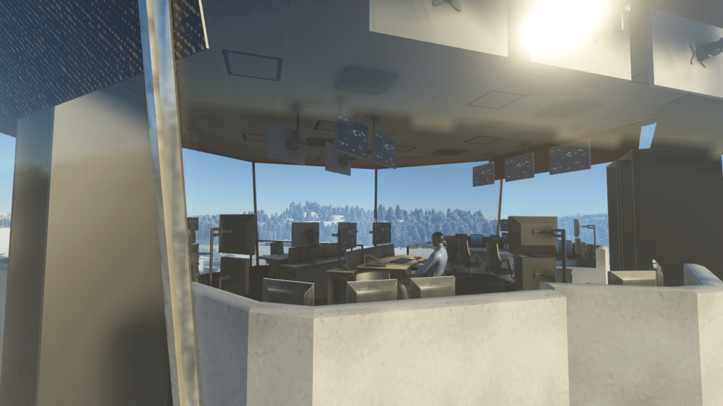 Nett ist wieder, dass die beiden Tower (vermutlich eben Tower und Vorfeldkontrolle) innen eingerichtet sind.