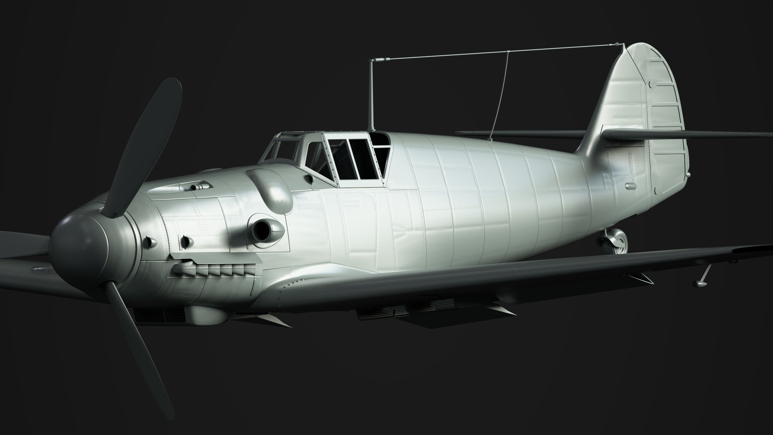 Der Blog-Eintrag schließt mit einem Bild eines Flugzeuges in frühem Entwicklungsstatium und der augenzwinkernden Bemerkung, man habe noch ein deutsches Flugzeug in Vorbereitung. Unschwer zu erkennen: Der Standard-Jäger der Luftwaffe, die Messerschmitt Bf109.
