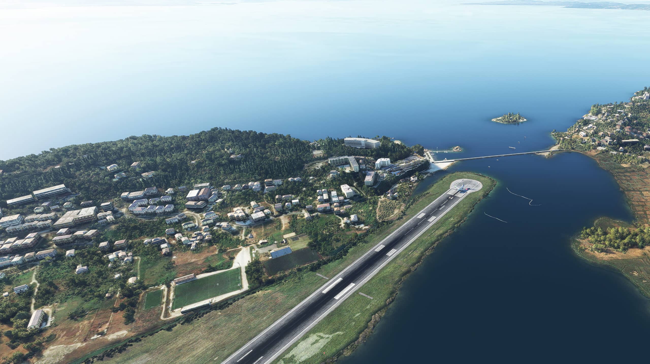 Entsprechend hat FlyTampa auch die direkte Umgebung des Flughafens in seine Umsetzung mit einbezogen und zudem die ganze Insel angepasst. Zudem gibt es auch Details wie KI-Seefahrzeuge, die auch das nahe Wasser beleben sollen. Die vom Entwickler angegebenen Features in der Übersicht: