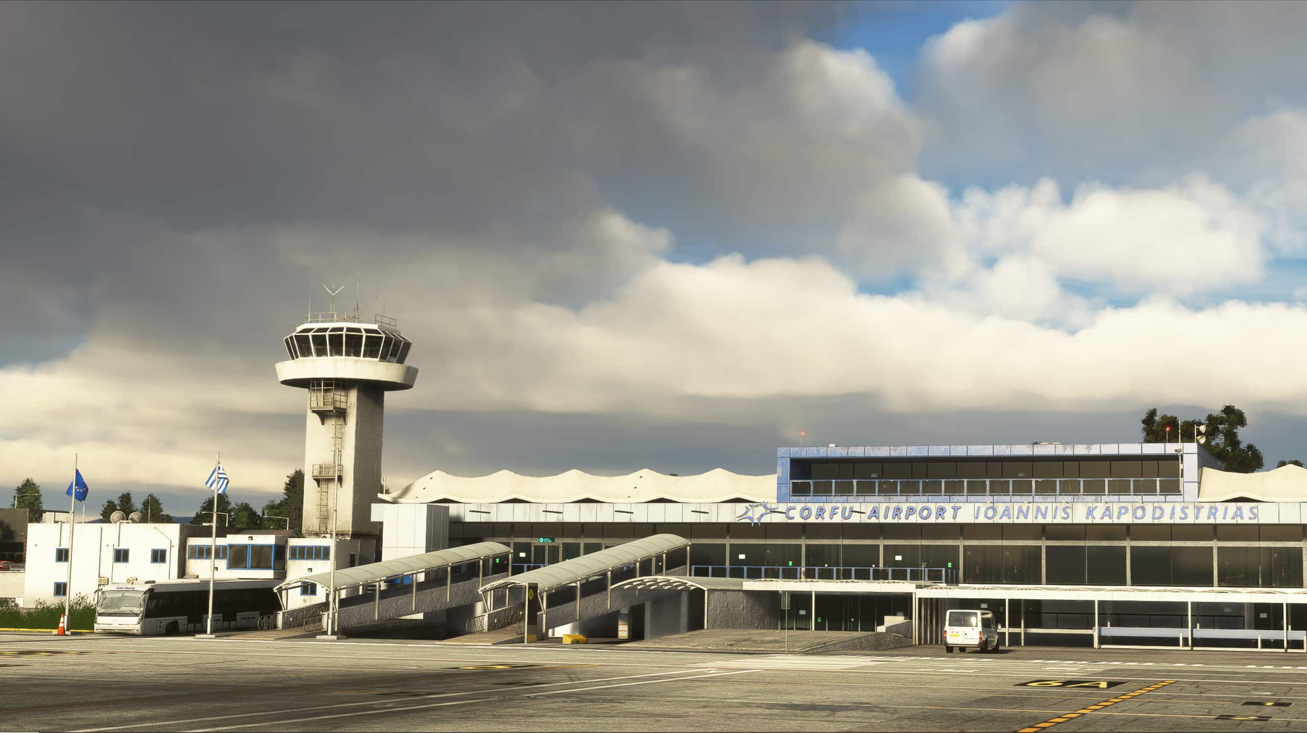 Das bekannte Entwicklerstudio FlyTampa hat in den vergangenen Monaten an der Umsetzung des bei Flugenthuaisten sehr beliebten Flughafens gearbeitet und das Ergebnis nun veröffentlicht. Der Airport mit dem ICAO-Code LGKR liegt nahe des Zentrums von Korfu Stadt, etwa in der östlichen Mitte der Insel. Für Piloten ist der Flughafen reiz- und anspruchsvoll, da seine einzige Start-/Landebahn zu großen Teilen von Wasser umgeben ist. Erfordert der Wind einen Abflug in nördlicher Richtung, wird nach einem Backtrack-Taxi ein großer Wendeplatz genutzt, um Runway 35 verwenden zu können. Die nördlich an den Flughafen grenzende Hauptstraße wird aus Sicherheitsgründen bei Starts und Landungen regelmäßig gesperrt. Da man sowohl im Norden als auch im Süden sehr gut an den Airport herankommt, zieht Korfu auch Spotter in seinen Bann.