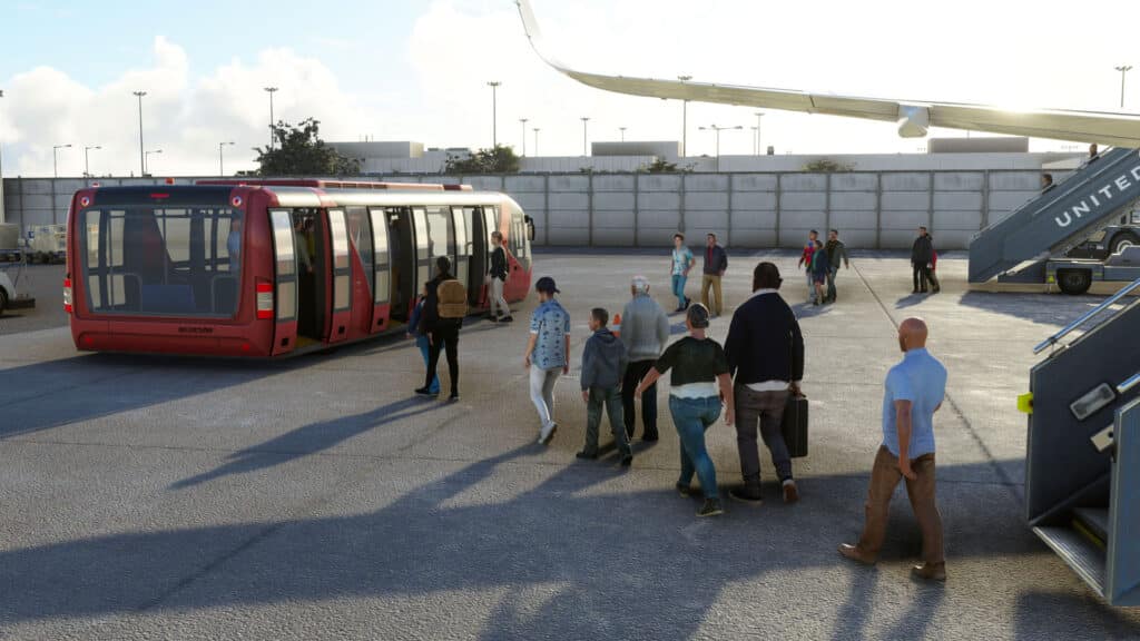 Das Programm ist FSX- und P3D-Usern gut bekannt, nun hält es auch in Asobos Simulation Einzug. GSX Pro wertet bereits existierende Bodendienste wie Pushback, Betankung und Beladung auf, ergänzt diese von Haus aus bereits rudimentär simulierten Vorgänge zudem auch noch um weitere Dinge. So bringen Shuttlebusse Crews zu ihren Fliegern, Passagiere steigen ins Flugzeug (auch über Jetways), Flieger werden im Winter enteist und Follow-Me-Cars weisen auf Wunsch den Weg zum Gate. Dort wird man außerdem individuell gestaltete Jetways sehen, die das Tool passend nach Region und Flughafengröße anpasst.