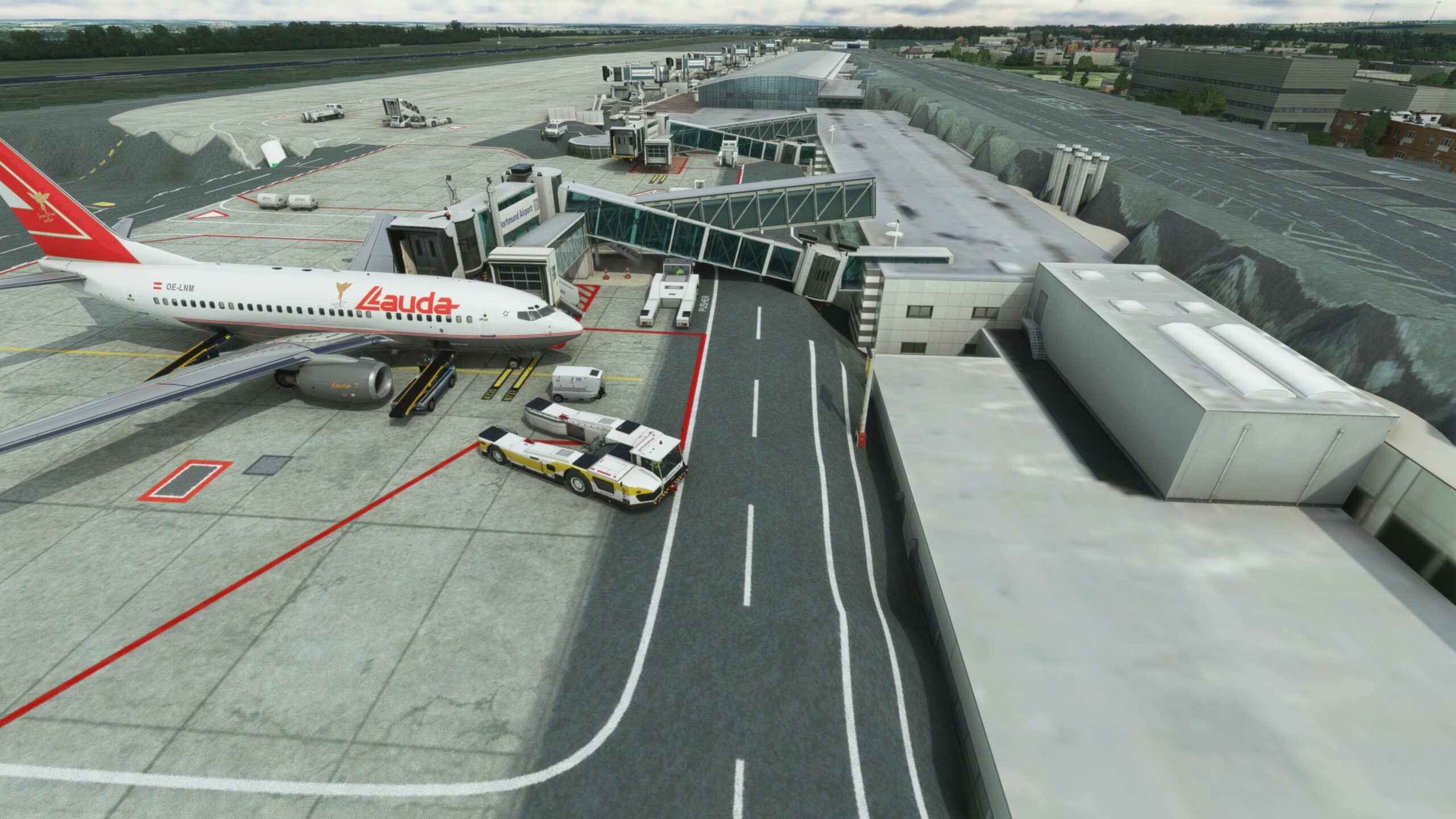 Hier noch ein Bild vom EDLW Flughafen nach der Installation von GSX Pro, falls jemand eine Lösung kennt …