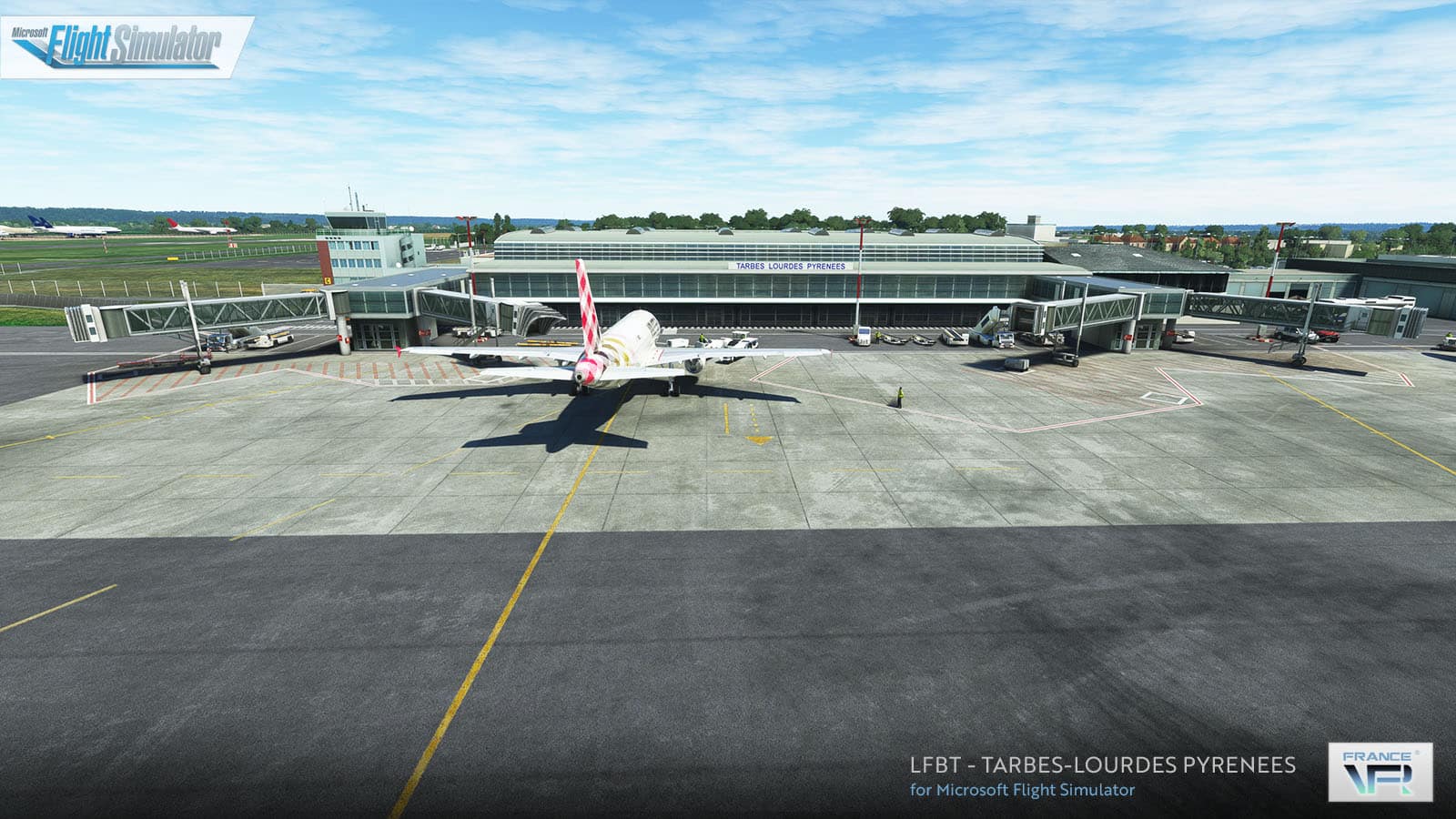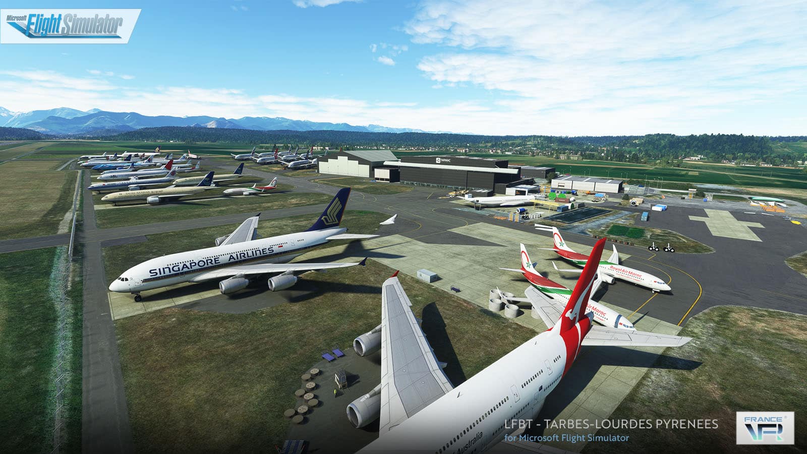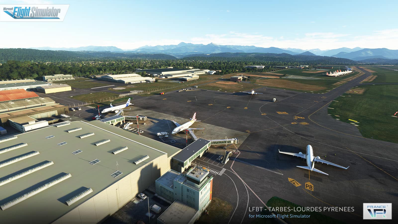 Die Szenerie LFBT Tarbes-Lourdes Pyrénées von France VFR für den Microsoft Flight Simulator ist eine hochwertige Szenerie für alle, die gerne in Frankreich fliegen. Dieses Add-on bietet eine genaue Darstellung des regionalen Flughafens in den Ausläufern der Pyrenäen-Gebirgskette.