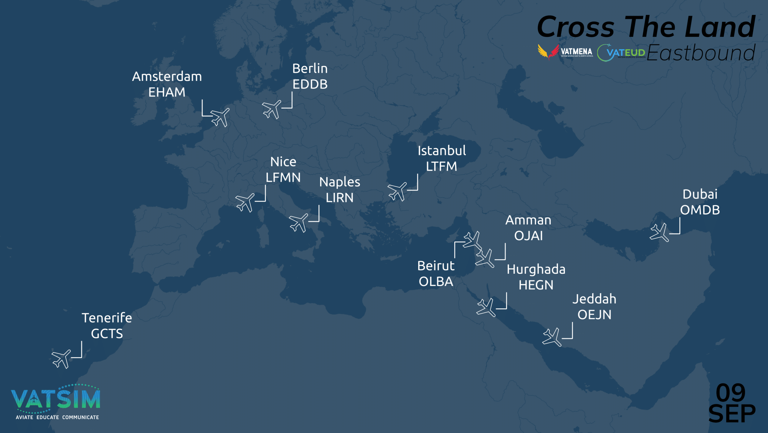 Geflogen wird dieses Jahr von West nach Ost, sprich Eastbound. Das Event findet am 9. September statt. Da es wie bei jedem VATSIM Event sehr voll wird, wird dringend empfohlen frühzeitig einen Slot zu buchen. Ab wann man sich anmelden kann, ist derzeit noch unbekannt, wird aber in den nächsten Tagen bekannt gegeben werden.