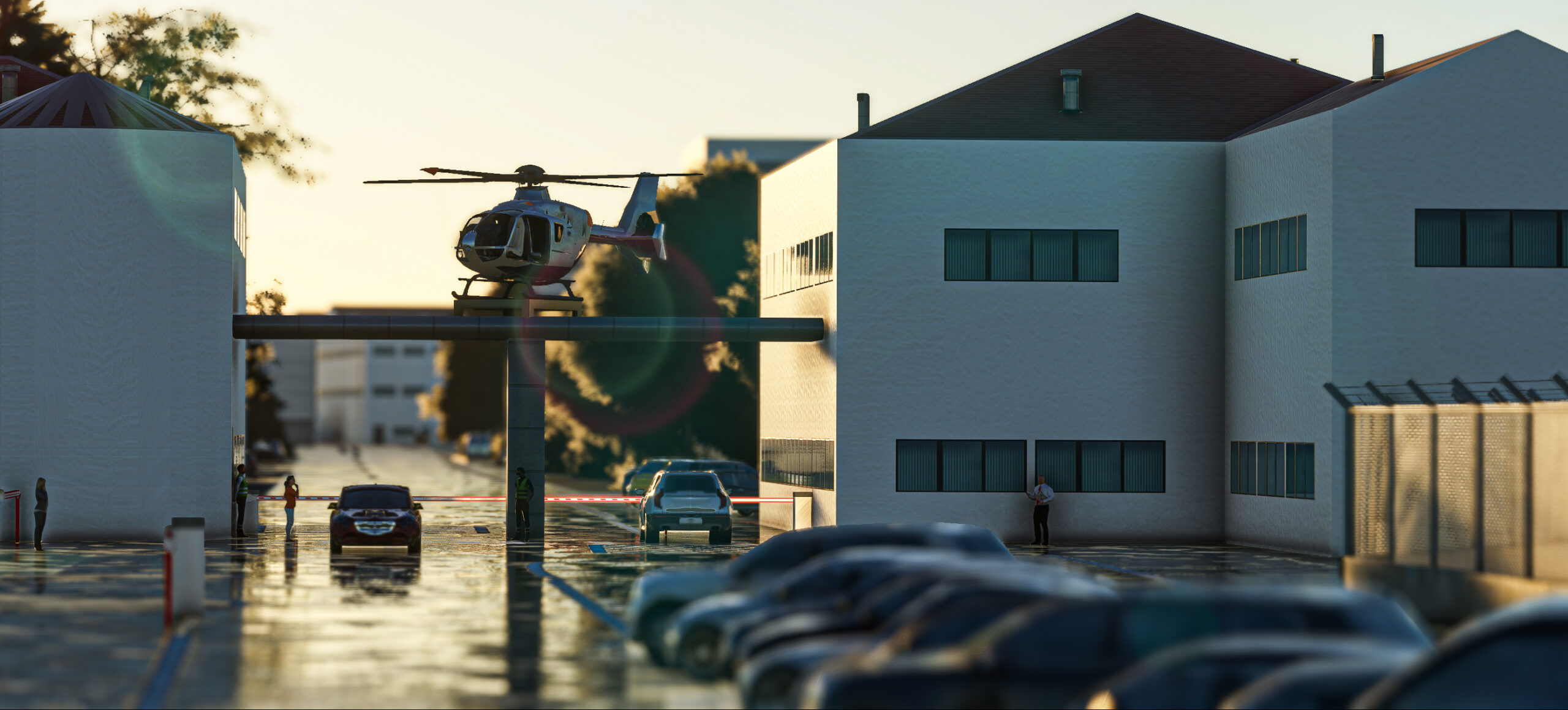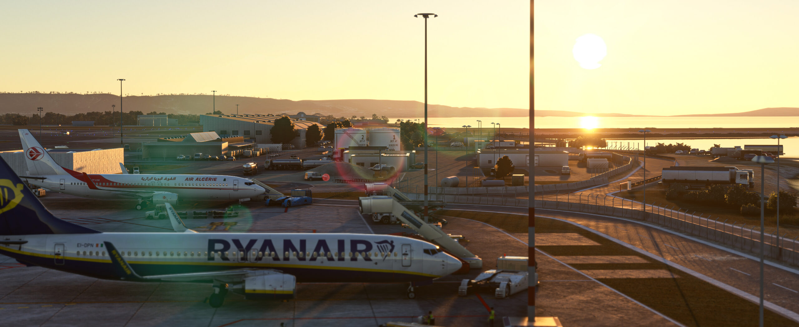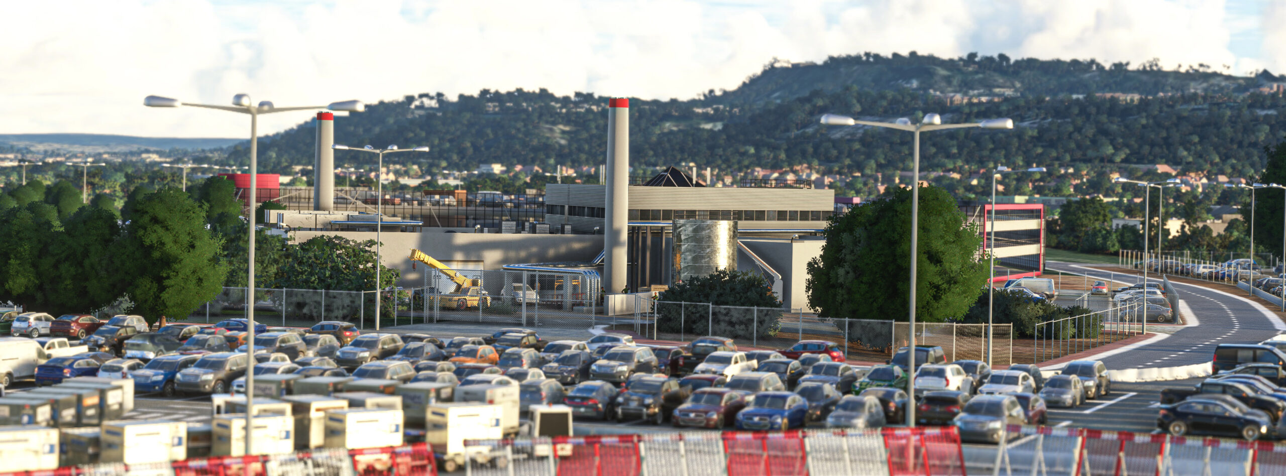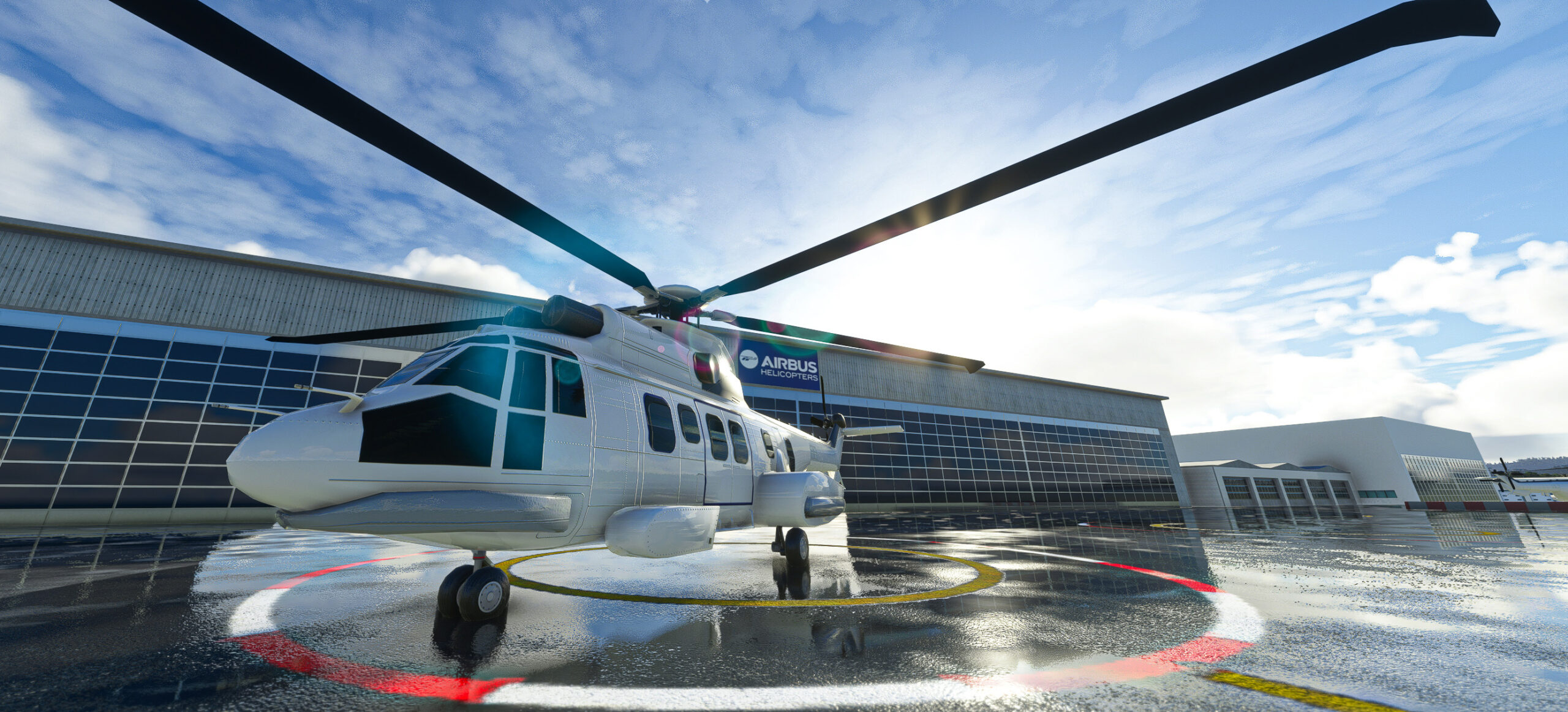 - Detaillierte Gebäude: Das Terminalgebäude, die Hangars und andere Einrichtungen auf dem Flughafengelände sind hochdetailliert modelliert und mit hochauflösenden Texturen ausgestattet.