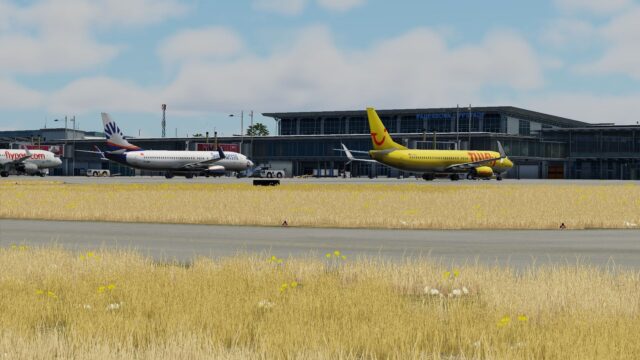 Mit dem Release von X-Plane 12 war der perfekte Zeitpunkt für Aerosoft gekommen, ihre Heimatscenery auf den neuesten Stand zu bringen. Die Entwickler haben großen Wert auf photorealistische Texturen und Details gelegt. So wird der Flughafen mithilfe hochauflösender Orthophotos und Bump Maps zum Leben erweckt. Selbst die kleinsten Markierungen auf dem Vorfeld sind nun scharf erkennbar.