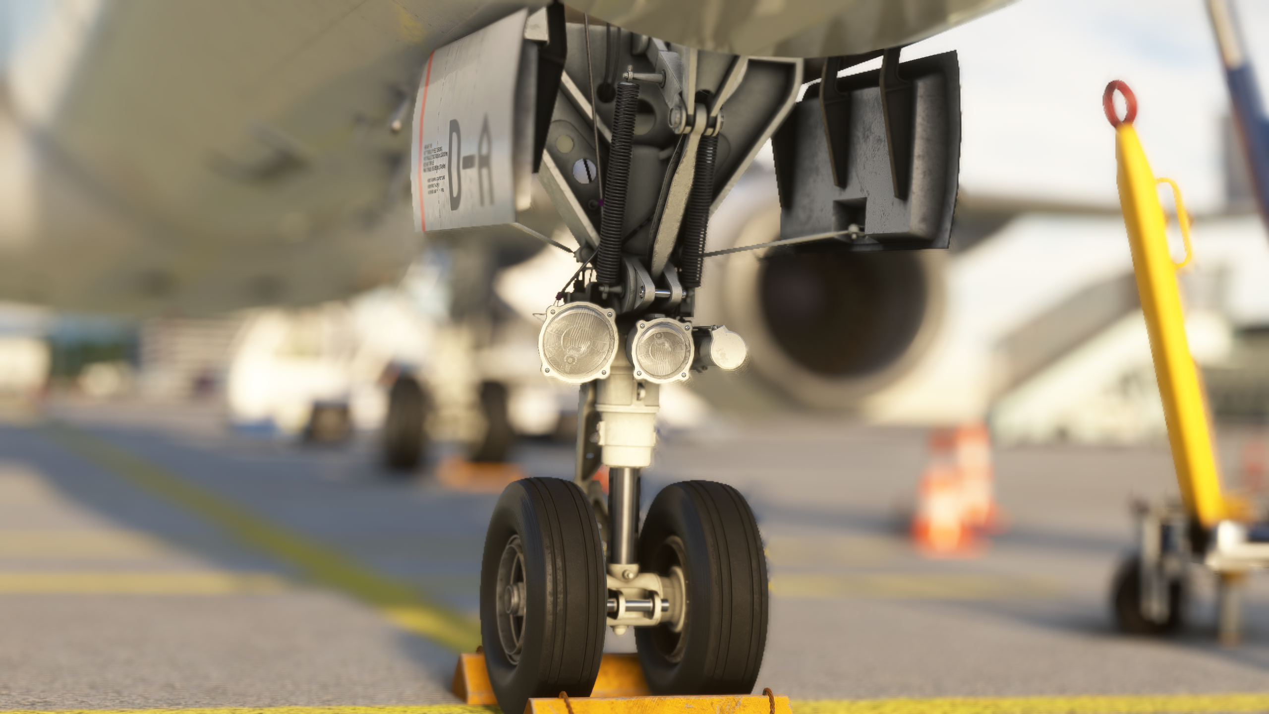 Etwas tiefer unter dem Flieger finden wir einen sehr wichtigen Bestandteil eines Fliegers, das Fahrwerk. Das Fahrwerk an dem Flieger ist sowie alles an dem Flieger super ausgearbeitet. Es sieht stimmig aus und besitzt alle wichtigen Details, die ein Fahrwerk zu einem guten Fahrwerk machen. So wurden alle Leitungen richtig und akkurat verlegt, und die Lampen richtig gesetzt. Ein tolles Fahrwerk.