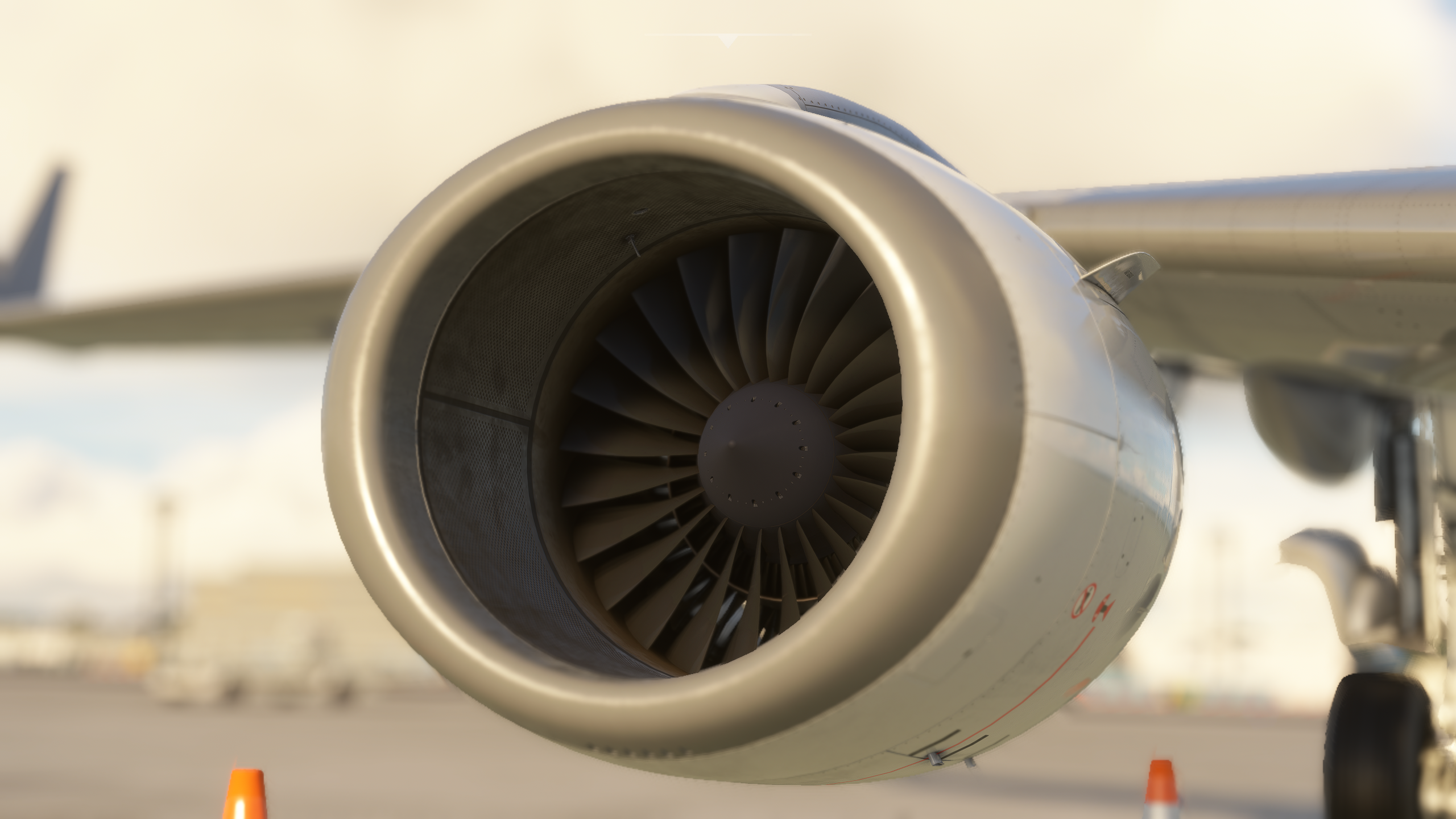 Weiter hinten in der Nähe der Flügel finden wir das Wichtigste an einem Flieger. Das Triebwerk. Das Triebwerk an dem Flieger hat eine etwas ovale Form und integriert sich klasse in den Flieger. Alles wurde mit höchster Präzision modelliert und texturiert und weist keine weiteren Fehler auf.
