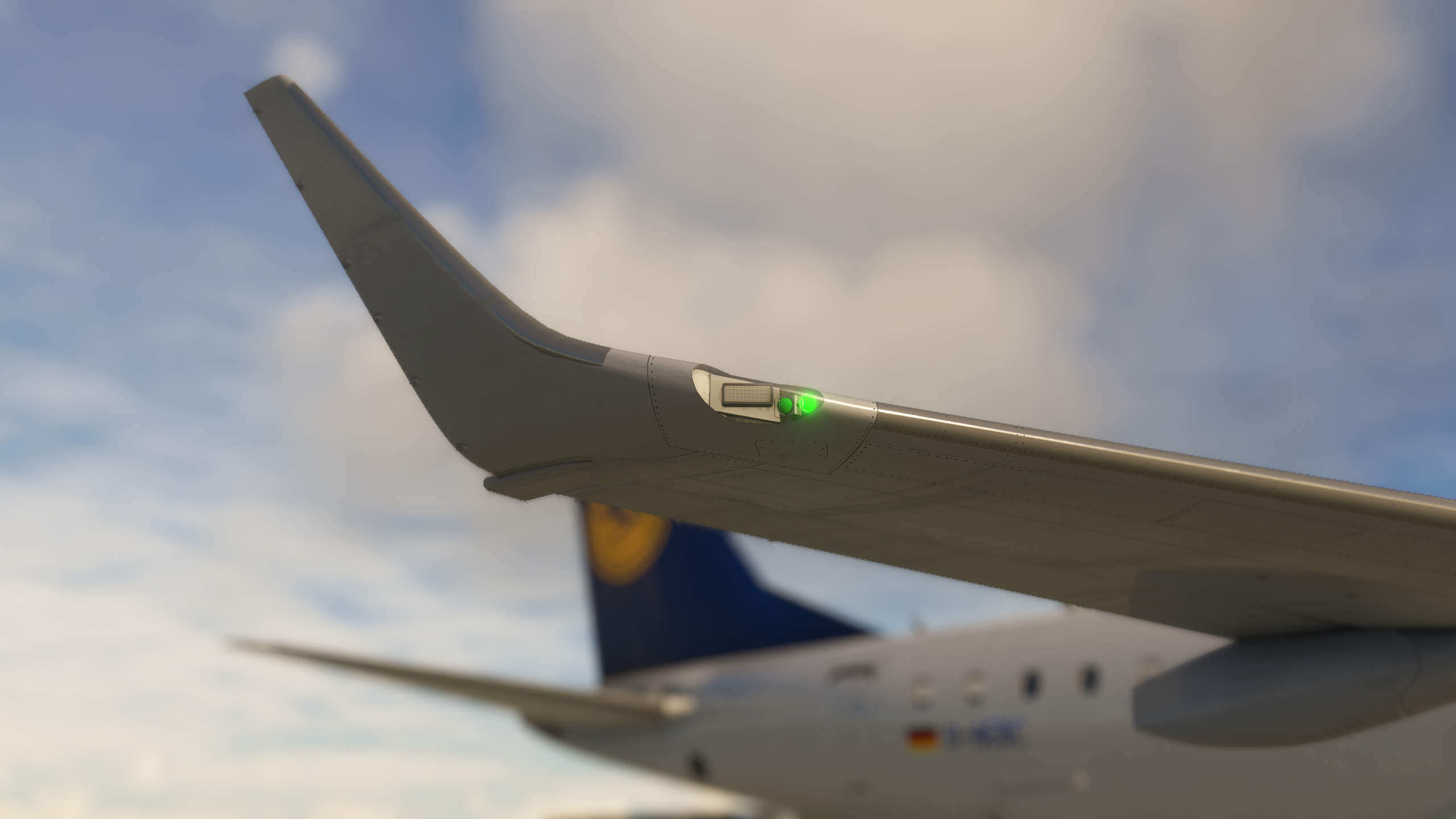 Wenn wir einen Blick ans Ende des Flügels wagen, sehen wir die Winglets, sowie die im Flügel integrierten Lichter. Wie am Rest des Außenmodells leistete das Team beste Arbeit.