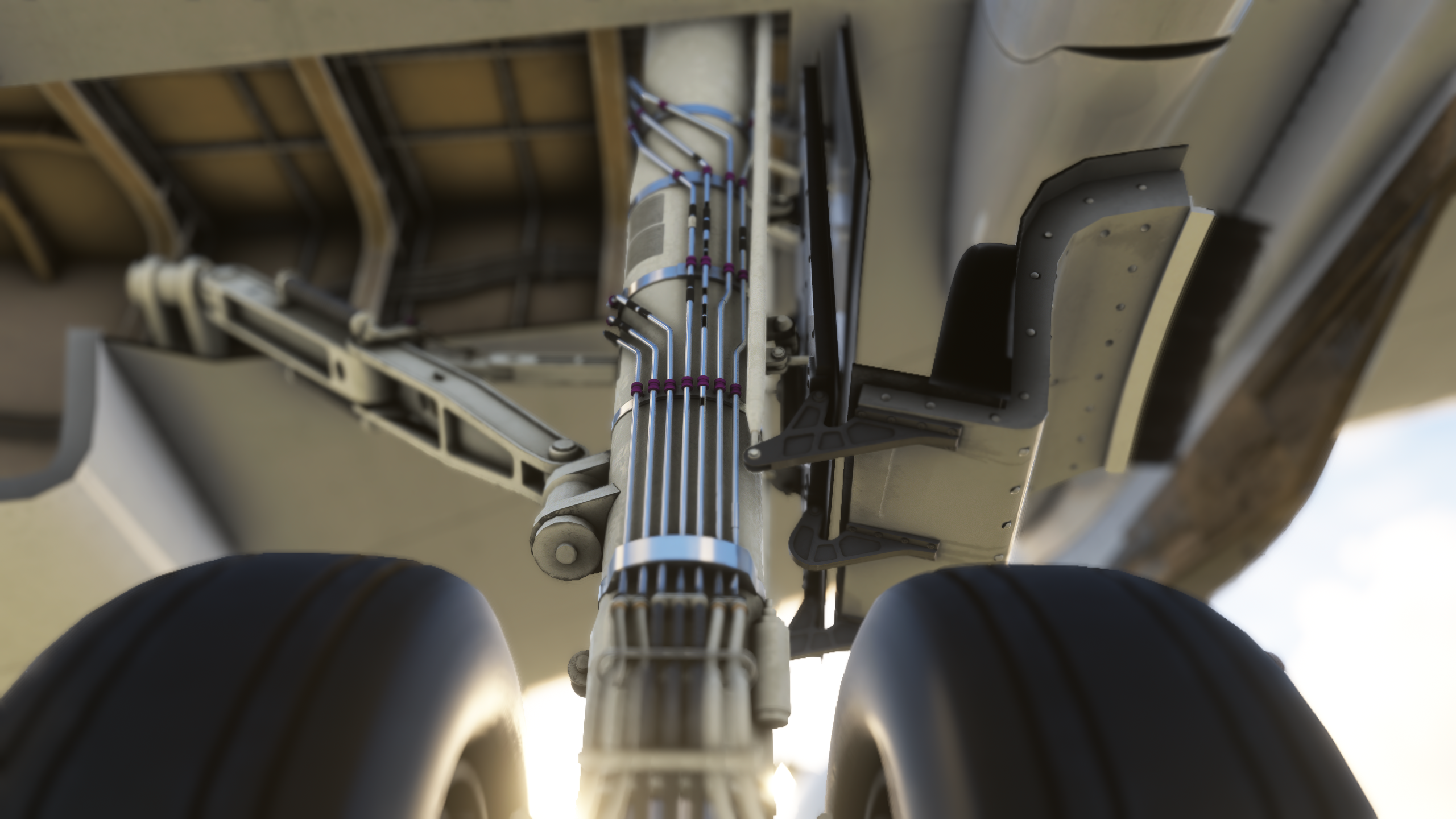 Wenn wir nochmal dem Rumpf etwas näher kommen, können wir nochmal einen genauen Blick auf das Hauptfahrwerk werfen. So wie das fordere Fahrwerk, besitzt dieses alle wichtigen Leitungen und Federungen. Ein paar Bilder davon sind unten zu sehen.