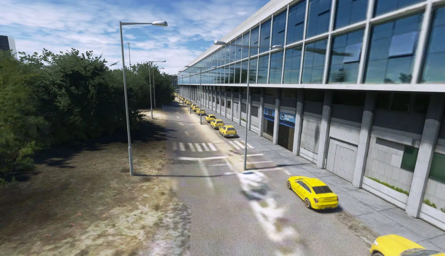 Das wichtigste Bauwerk des Flughafens, auf das mein Auge fiel, war das Passagierterminal. Was mir an dem Terminal auffiel, war der markante Abflugbereich. Es handelt sich um eine lange, glasumzäunte zylindrische Struktur, die die Breite des Terminals überspannt. Der Entwickler hat dieses interessante Merkmal sowohl im Inneren als auch außen akkurat nachgebildet, einschließlich der transparenten Verglasung der Wände und des Dachs.