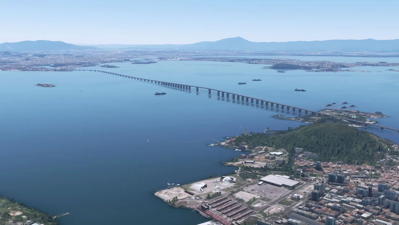 Neben der Christusstatue, die sich auch schon in MSFS befand, gibt es ohne diese Szenerie keinen Vergleich in Bezug auf Anzahl und Qualität der hinzugefügten Wahrzeichen. Um einige der prominentesten zu nennen: Christusstatue, Zuckerhut Berg und seine Seilbahn, Museum der Zukunft, Metropolitan Dom, Rio Star und die Präsident Costa e Silva Brücke und die brasilianische Marineakademie. Dies ist nur eine Teilaufzählung der vielen inkludierten Sehenswürdigkeiten, die der Flugsimulations-Pilot nun erkunden und genießen kann. Die Gewässer in der Region sind sehr belebt und um dies darzustellen, wurden verschiedene Arten von Schiffen und Booten sowohl kommerzieller als auch militärischer Art hinzugefügt, etwas, das im Default von MSFS für dieses Gebiet völlig fehlte.