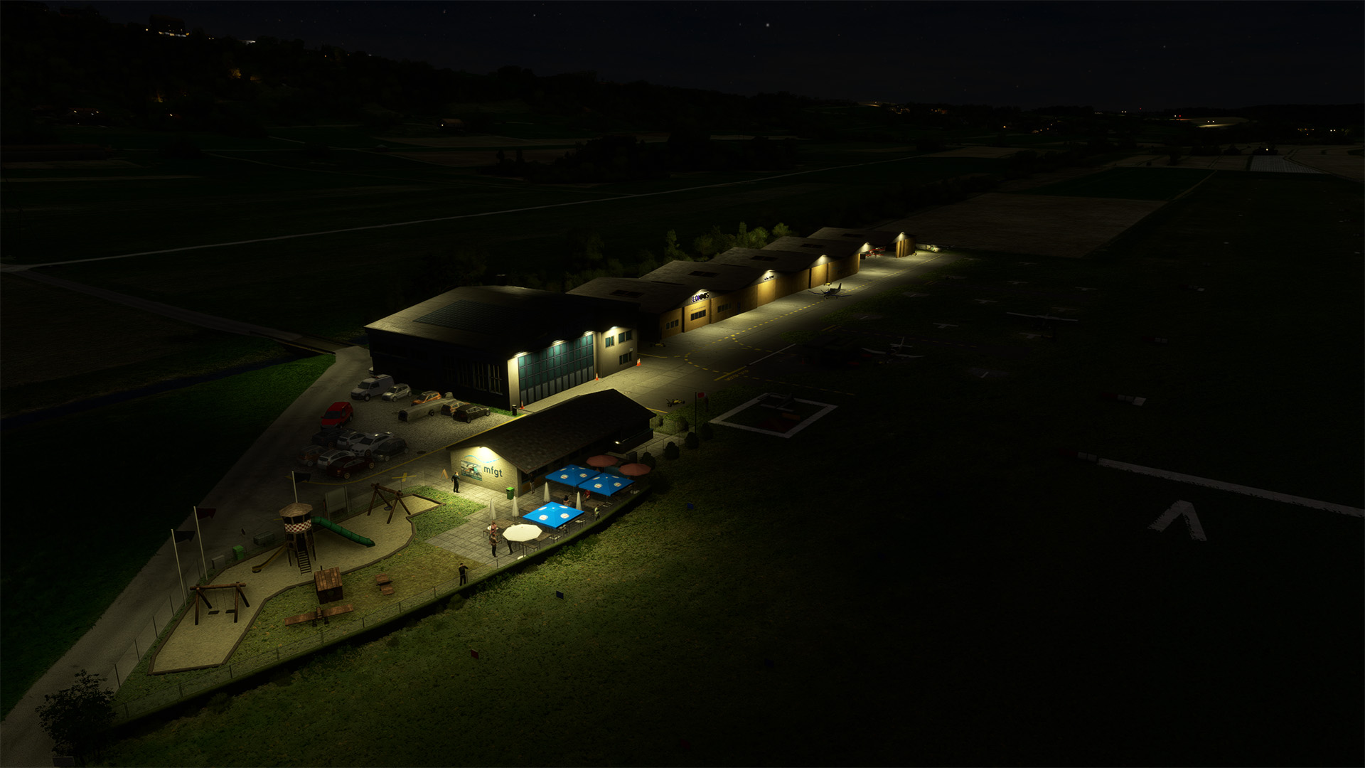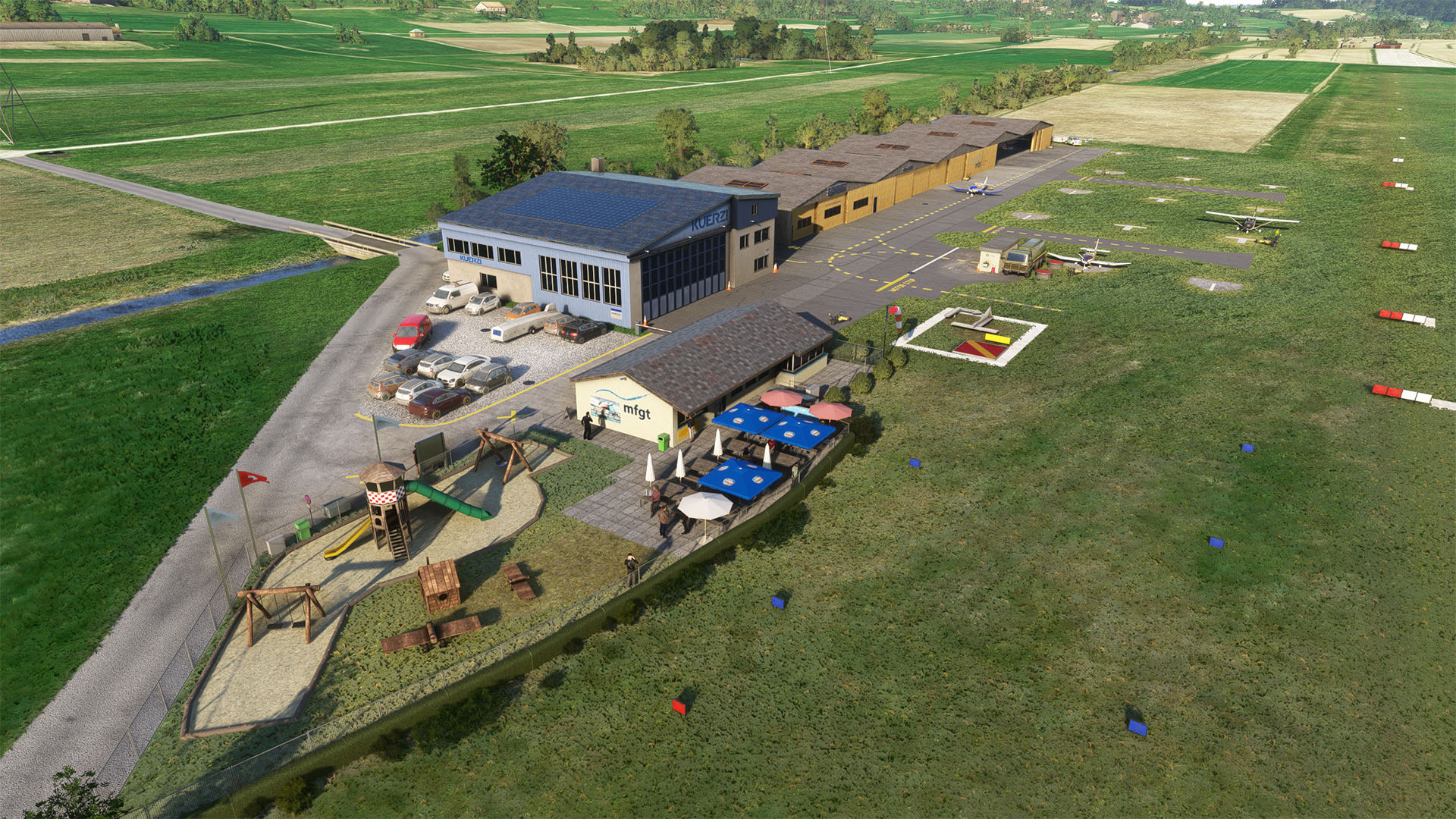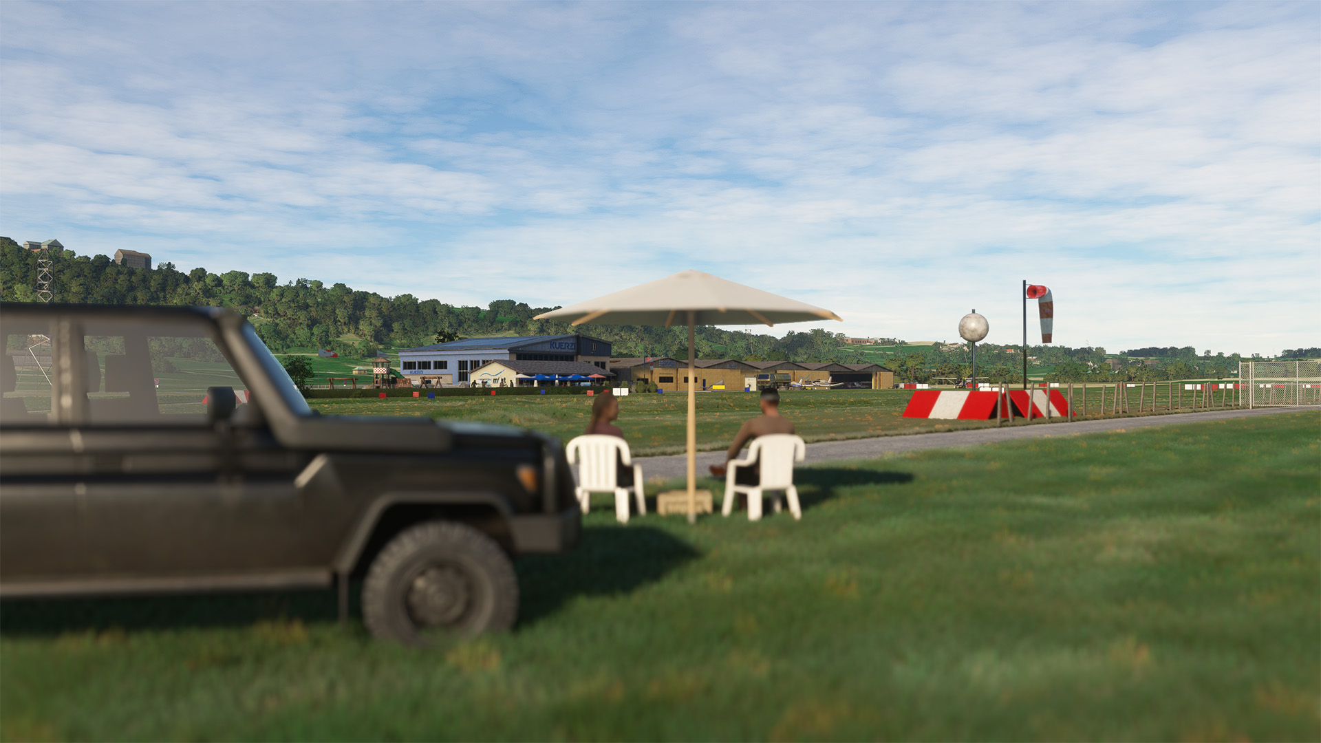Um das Lommis Airfield im MSFS (Microsoft Flight Simulator) so realistisch wie möglich darzustellen, hat sich Entwickler AG SIM besonders angestrengt. Jedes noch so kleine Detail, das Ihr Flugerlebnis am Lommis Airfield beeinflusst, wurde akribisch modelliert. Sie haben Menschen hinzugefügt, eine funktionierende Uhr, eine funktionierende Lande-„T“, Flaggen, die sich je nach Windrichtung und -geschwindigkeit bewegen, sowie individuelle Windsocken.