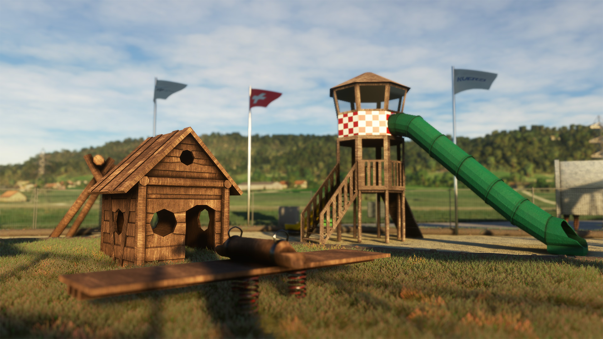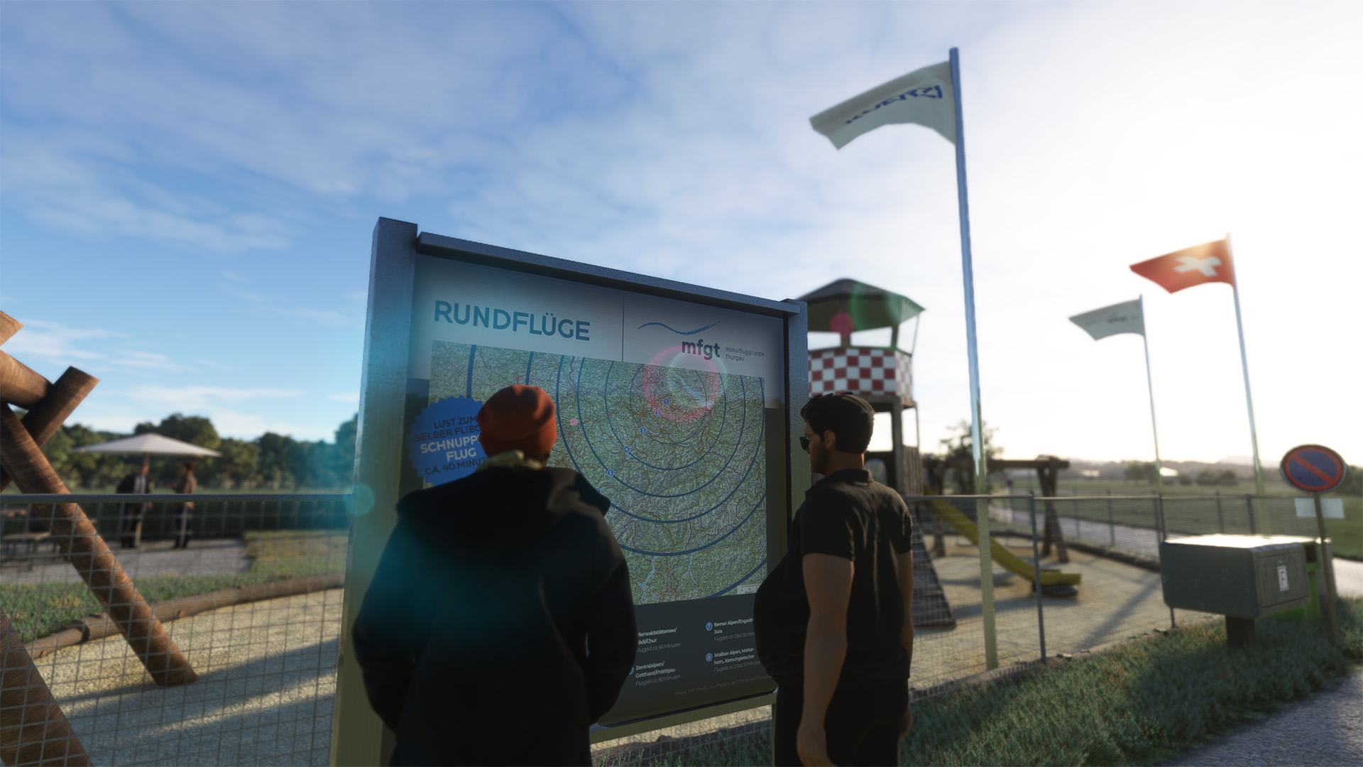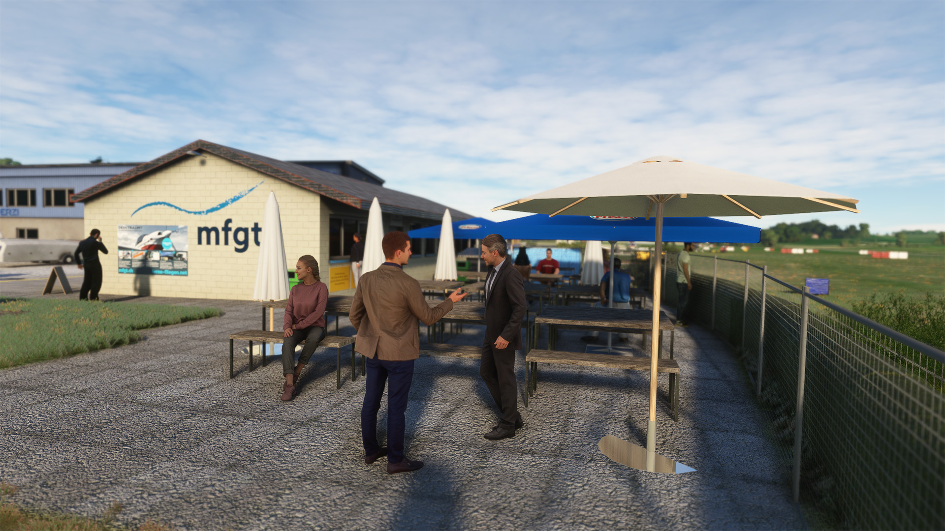Um das Lommis Airfield im MSFS (Microsoft Flight Simulator) so realistisch wie möglich darzustellen, hat sich Entwickler AG SIM besonders angestrengt. Jedes noch so kleine Detail, das Ihr Flugerlebnis am Lommis Airfield beeinflusst, wurde akribisch modelliert. Sie haben Menschen hinzugefügt, eine funktionierende Uhr, eine funktionierende Lande-„T“, Flaggen, die sich je nach Windrichtung und -geschwindigkeit bewegen, sowie individuelle Windsocken.