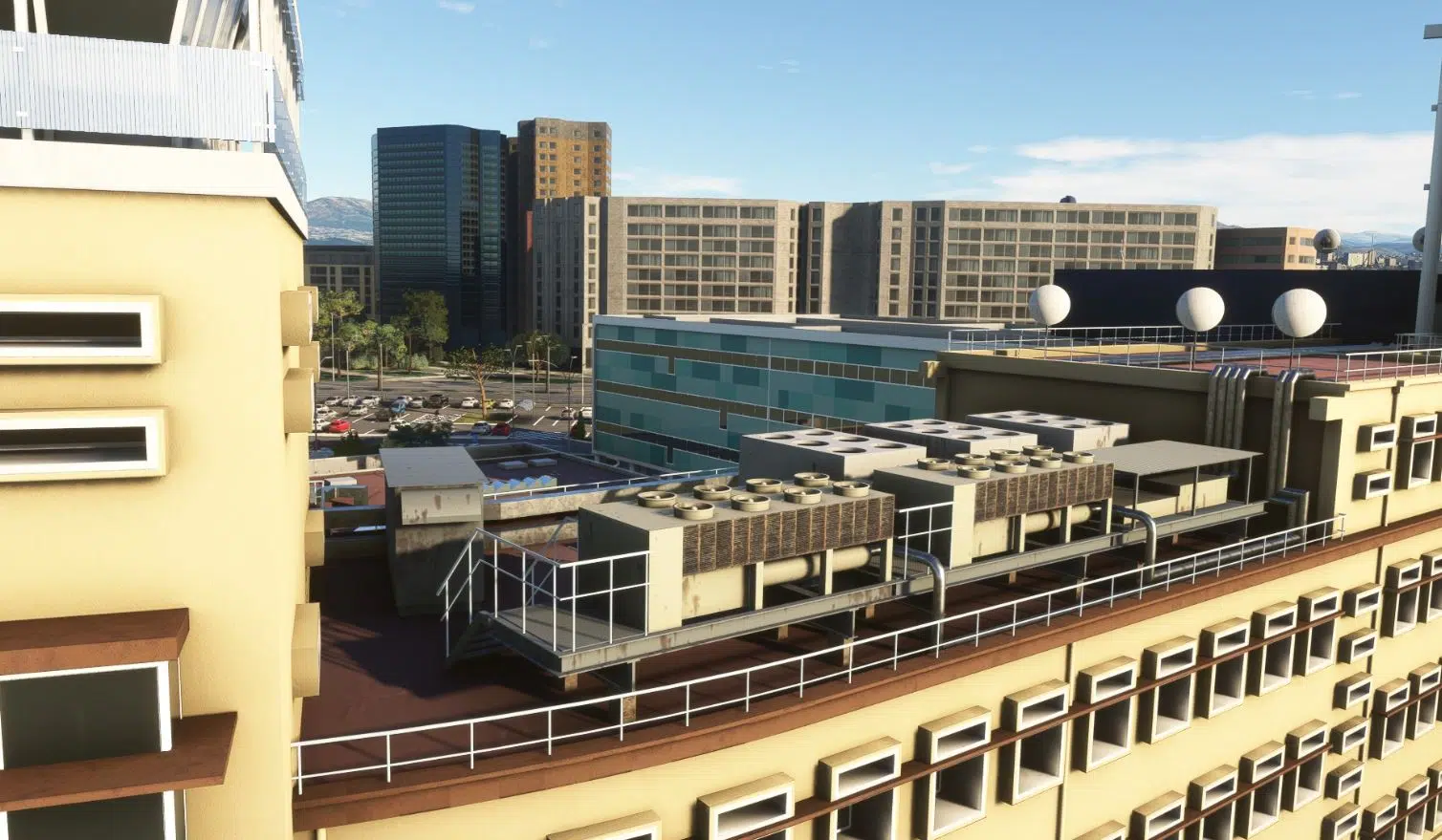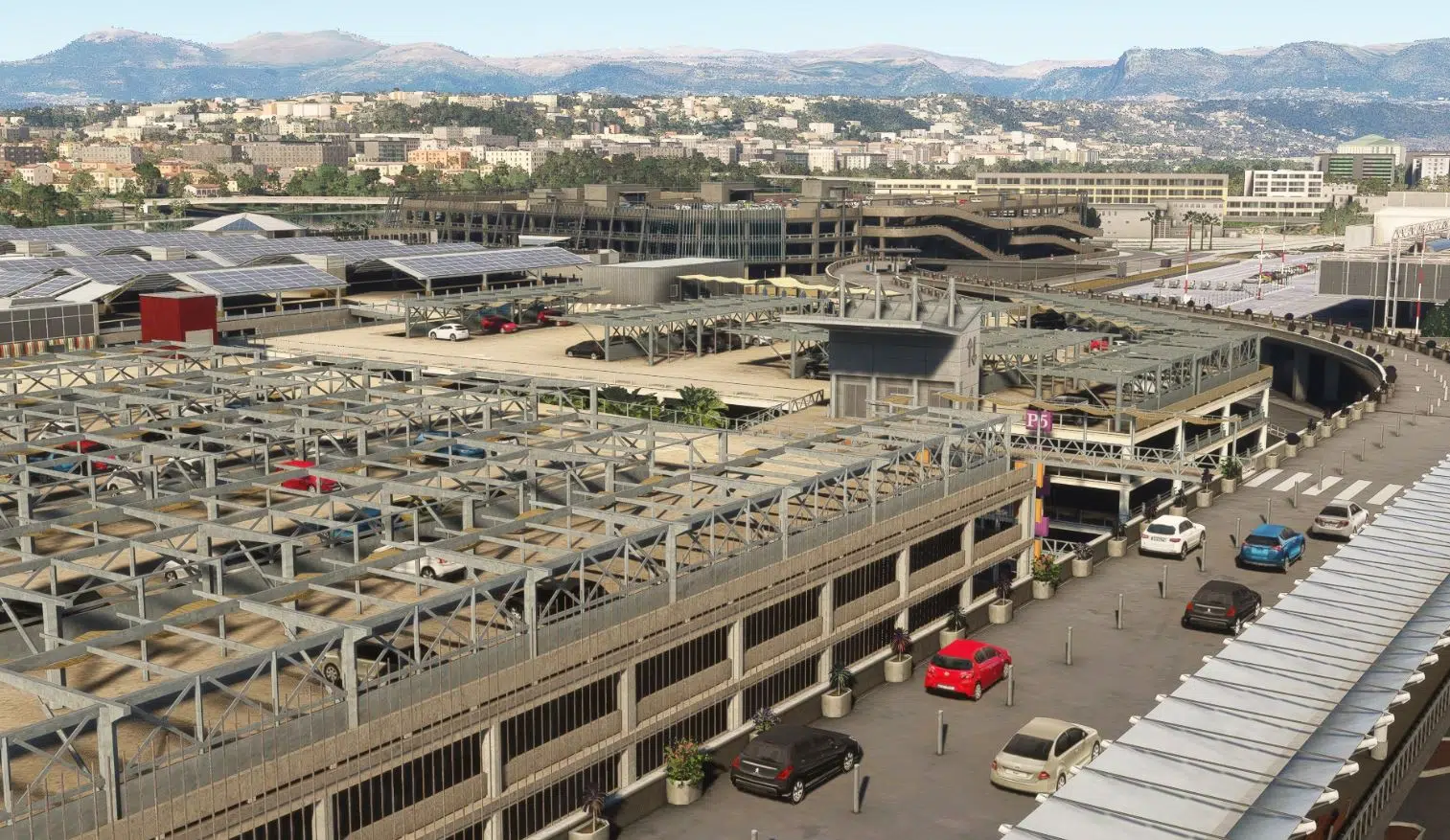 Ich war ebenso überwältigt von dem, was ich in Bezug auf die Strukturen sah. Der Flughafen verfügt über zwei große Passagierterminals, ein Geschäftsterminal, ein Fracht-/Frachtterminal, einen ATS/Met/Kontrollturmkomplex, einen Treibstofflagerbereich, eine Feuerwache und mehrere kleine Hangars. Auf der Ankunftsseite gibt es einige große Parkhäuser auf mehreren Ebenen. Insgesamt ist die Designvielfalt ein interessanter Flughafen zum Erkunden. Bei näherer Betrachtung der verschiedenen Strukturen wurde schnell klar, dass dieser Entwickler große Anstrengungen unternommen hat, um jede einzelne davon so realistisch wie möglich zu gestalten. Die handgefertigten Gebäude weisen viele diskrete Details auf; dreidimensionale Wände, Fenster, Türen und Dächer. Von oben bis unten schien nichts übersehen zu werden.