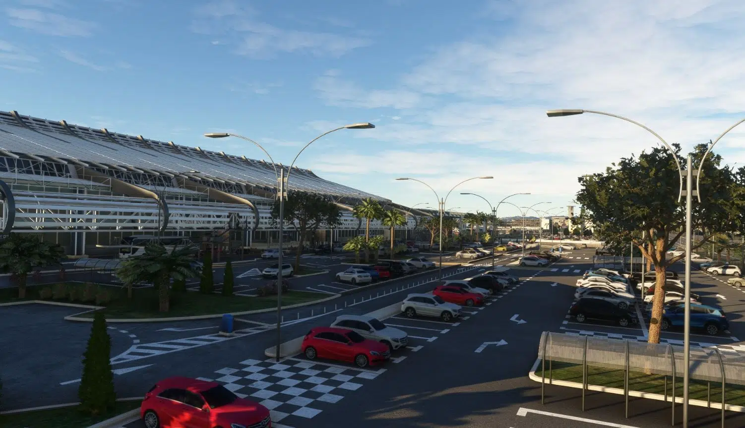 Der Flughafen verfügt außerdem über eine Straßenbahn, die Passagiere zwischen den beiden Terminals hin- und herbewegt und die mit zwei Zügen modelliert wurde, die sich entlang des speziellen Gleissystems bewegen.