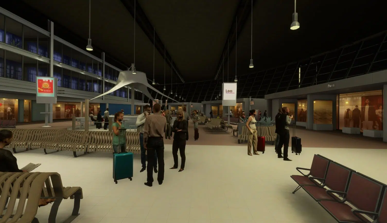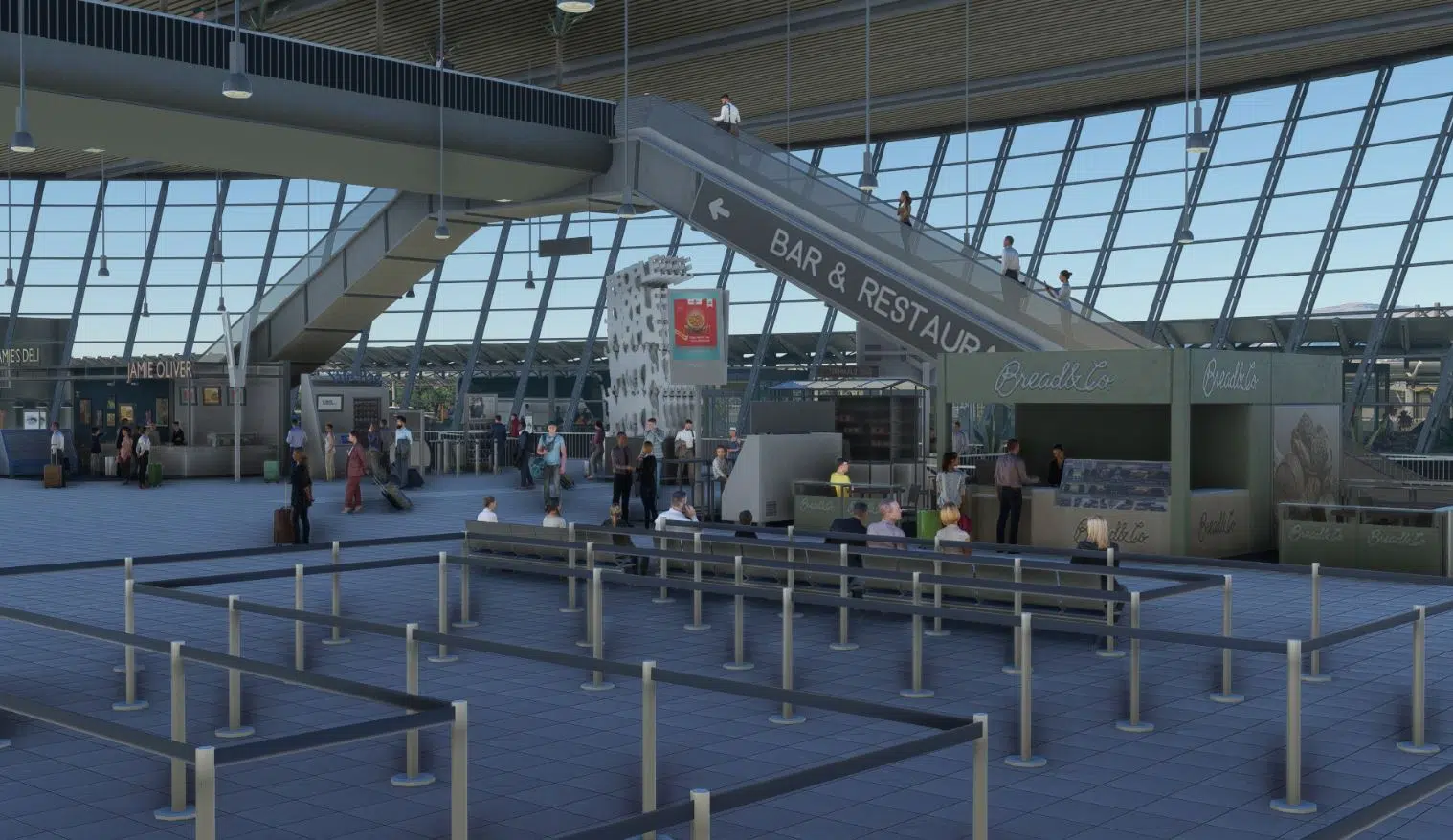 Die Modellierung der Innenräume von Gebäuden ist ein Feature, die viele Entwickler mittlerweile nutzen, und dieser Flughafen bildet da keine Ausnahme. Hier haben sie die Innenräume von Terminal 2, des Parkhauses, der Feuerwache und dem Kontrollturm modelliert. Der Detaillierungsgrad ist gelinde gesagt erstaunlich. Wie beim Äußeren haben sie die Messlatte für Qualität eindeutig sehr hoch gelegt und wurden nicht enttäuscht. Als ich die Innenbereiche, insbesondere Terminal 2, erkundete, hatte ich das Gefühl, persönlich dort zu sein. Ich bin mir sicher, dass viele denken werden, dass der Aufwand, der in diesen Teil der Szene gesteckt wurde, eine Verschwendung von Ressourcen und eine potenzielle Belastung für Ihren Computer darstellt. Lassen Sie mich sagen, dass die Leistung nie beeinträchtigt wurde. Auch wenn ich diese Innenräume möglicherweise nur in sehr begrenztem Umfang erkunde, ist es interessant zu sehen, wie sie aussehen, und es kann sicherlich dabei helfen, die Qualität der Arbeit der Entwickler zu demonstrieren.
