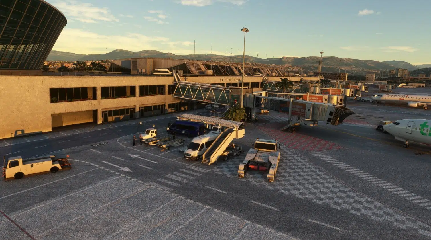 Der Flughafen verfügt über animierte Busse, Feuerwehrautos und Tankwagen, die auf einigen Zufahrtsstraßen des Flughafens unterwegs sind.