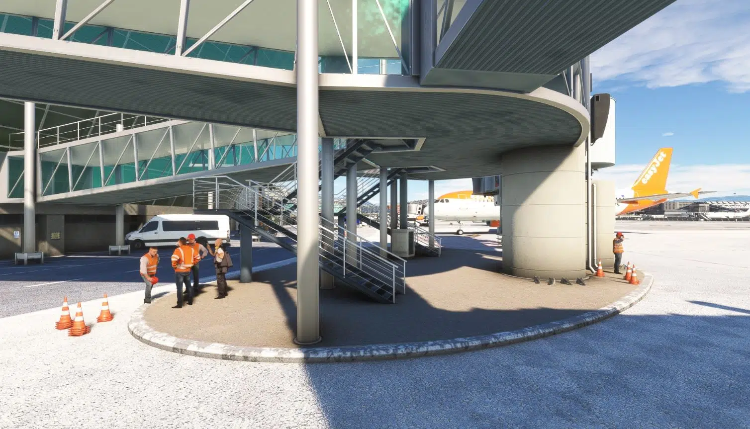 Etwas, das sie getan haben, was ich zumindest in diesem Ausmaß nicht gesehen habe, ist die Platzierung statischer Personen im gesamten Flughafen, die scheinbar an den für diesen Standort angemessenen Aktivitäten teilnehmen. Die meisten Entwickler fügen statische Personen in die Innenräume des Passagierterminals und der Kontrolltürme ein, wenn diese Bereiche modelliert werden. Dies ist jedoch normalerweise der Umfang. Hier haben sie einen zusätzlichen Schritt unternommen, der meiner Meinung nach einen großen Einfluss auf den Gesamtrealismus hat. Dies mag auf den ersten Blick unbedeutend erscheinen, ist aber eine subtile optische Aufwertung, die dazu beiträgt, den gesamten Flughafen zum Leben zu erwecken, und das alles ohne spürbare Auswirkungen auf die Leistung.